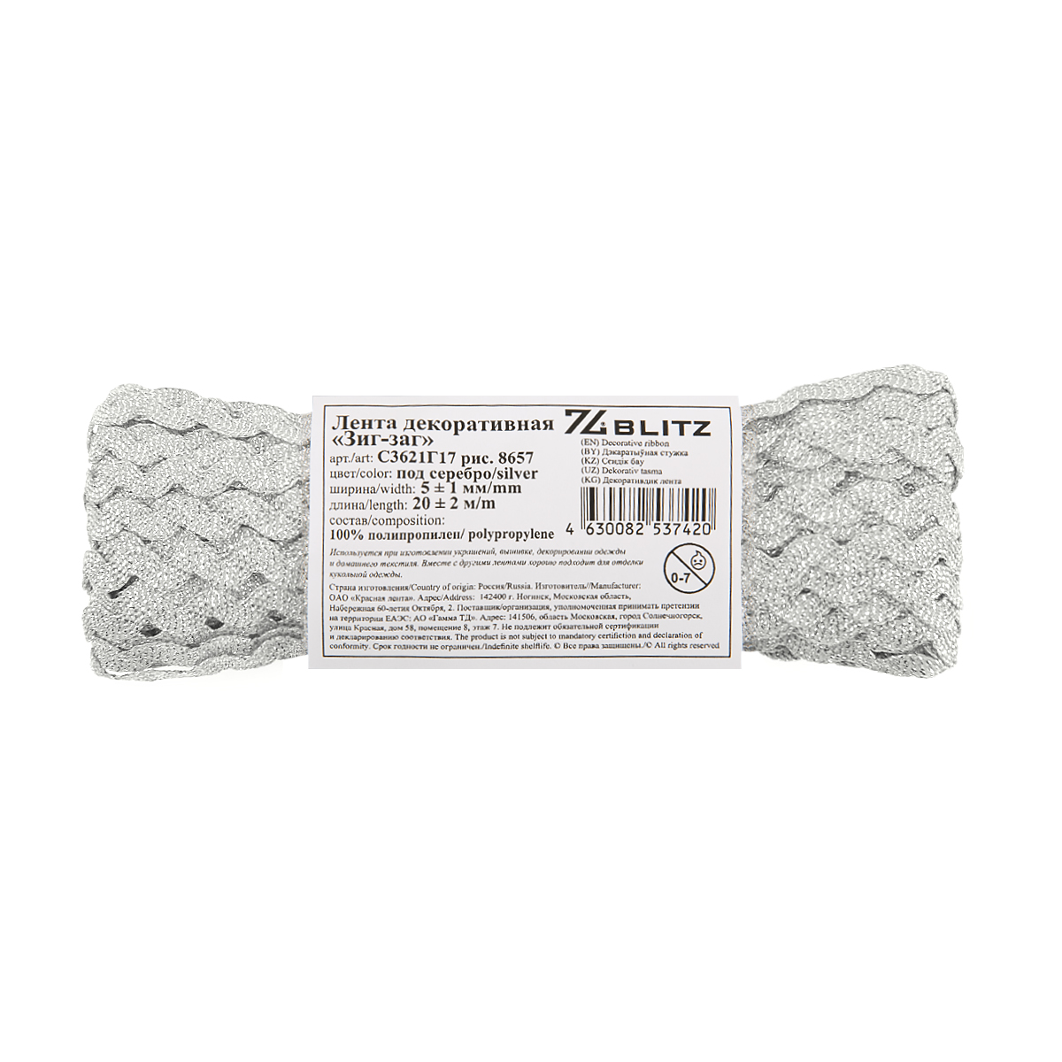 "BLITZ" С3621Г17 лента декоративная "ЗИГ-ЗАГ" метал., 5 мм ,под серебро