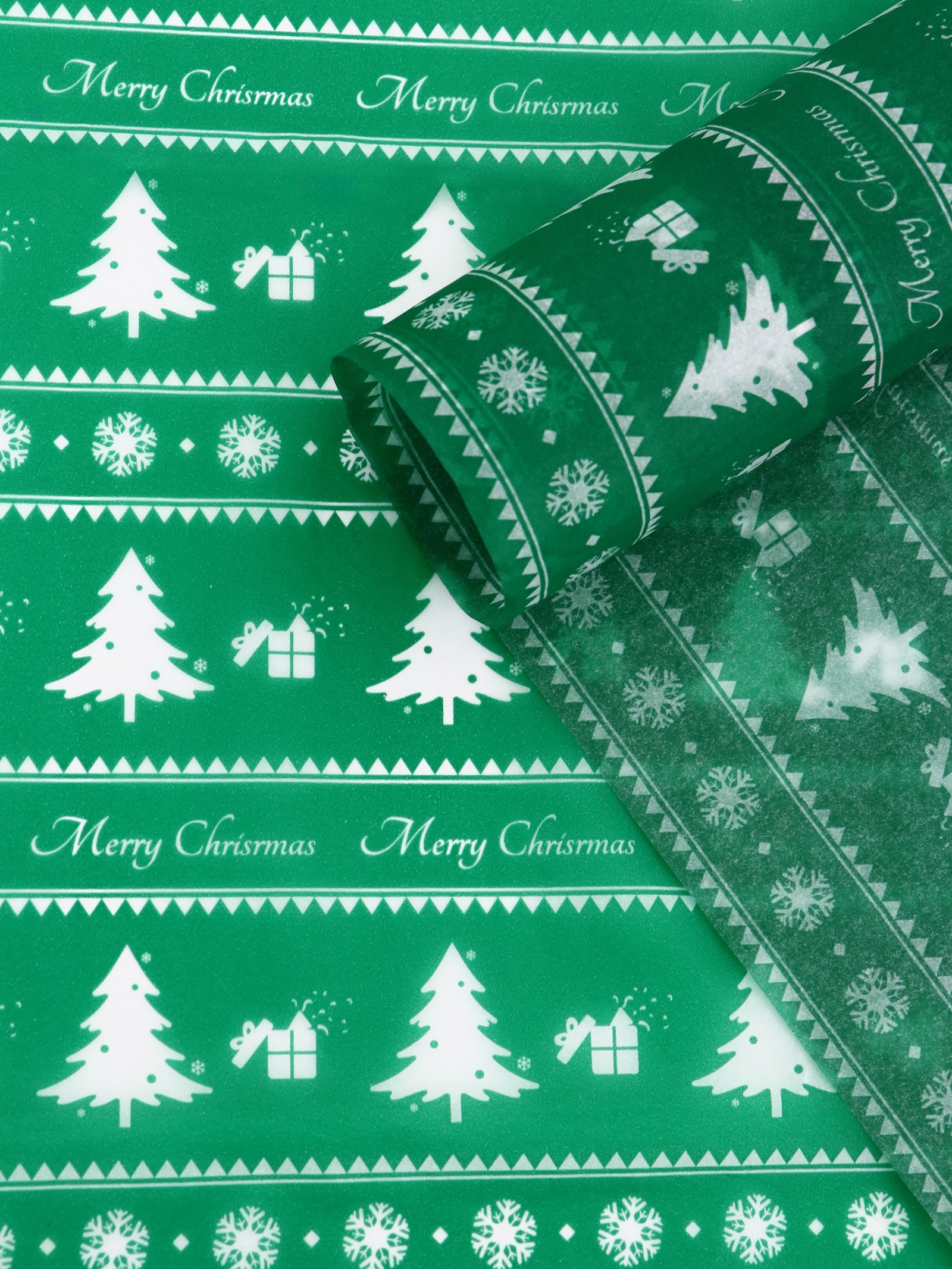 Бумага упаковочная новогодняя тишью «Лес»,50×66 см, 7896209