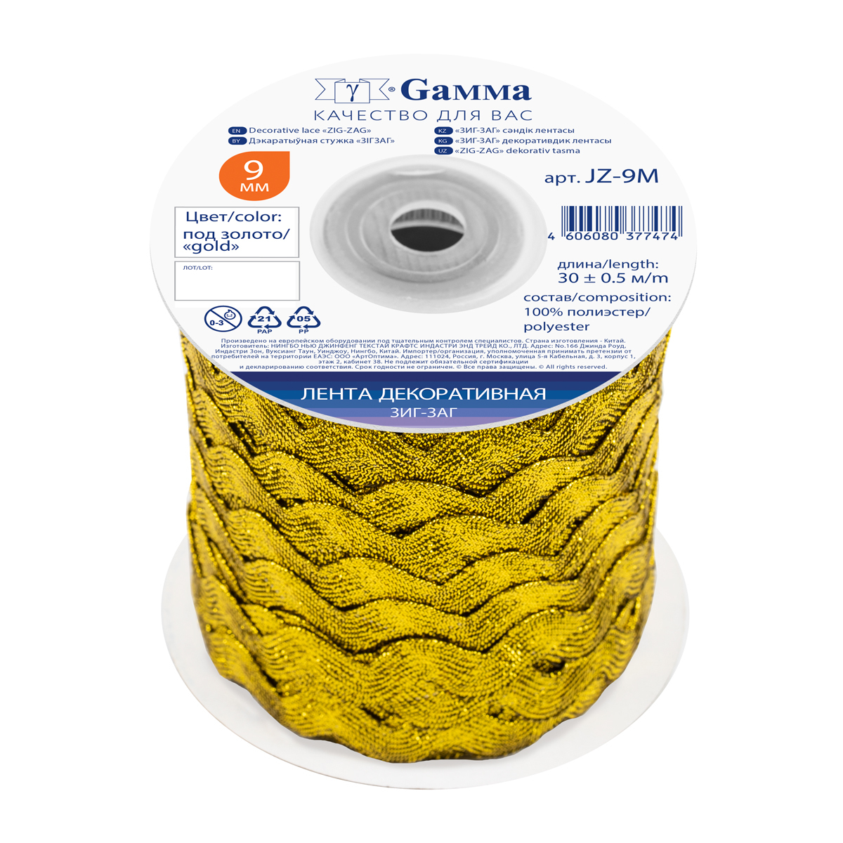 "Gamma"JZ-9M лента декоративная "ЗИГ-ЗАГ" 9 мм, золото
