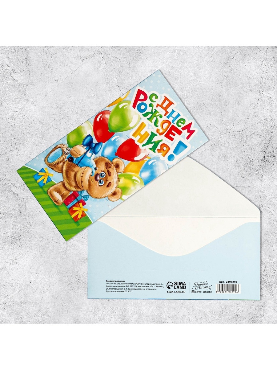 Конверт для денег "С Днём Рождения!" плюшевый мишка, 16,5 х 8 см 2493292