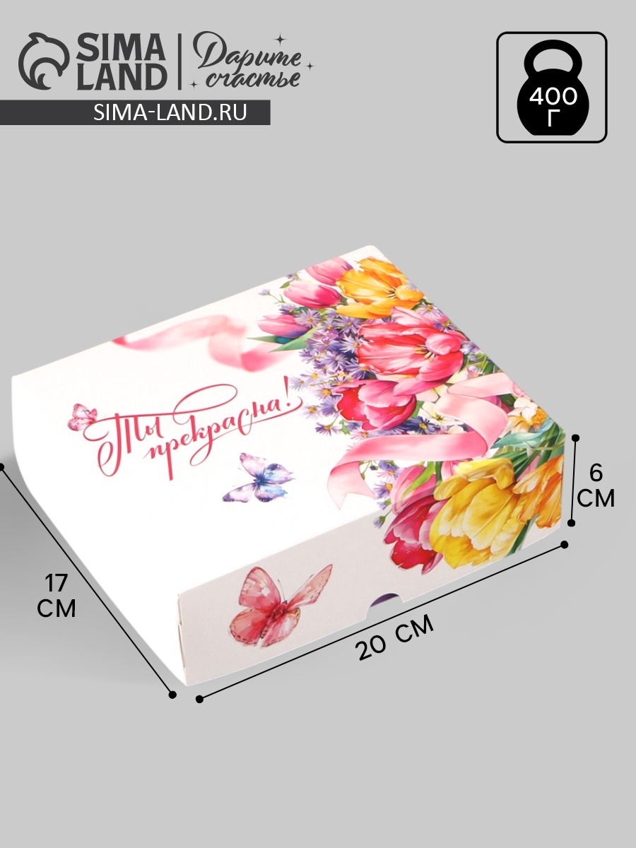 Коробка для кондитерских изделий «Ты прекрасна», 17 × 20 × 6 см, 10908532, Россия