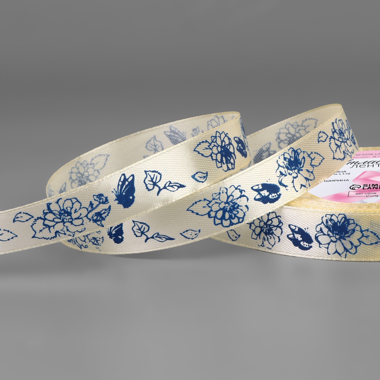 Лента атласная 15мм, пионы сливочный №002 АУ 9071729