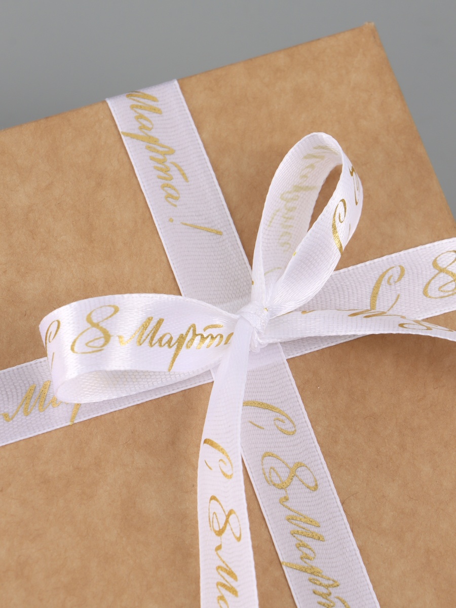 Лента атласная 15мм,С 8 Марта белый/тиснение золото №01 АУ 9877855