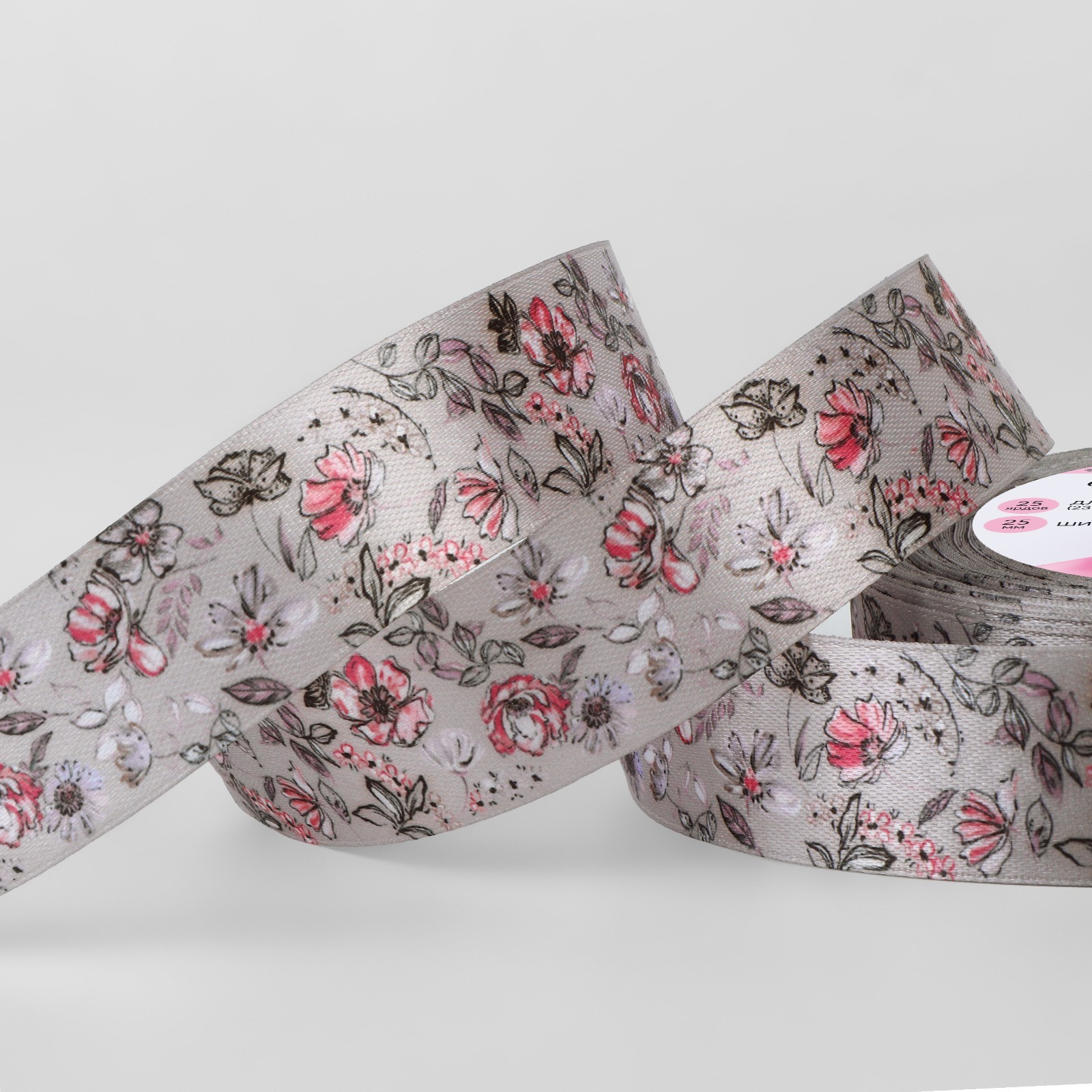 Лента атласная 25мм, холодные цветы АУ 9898117