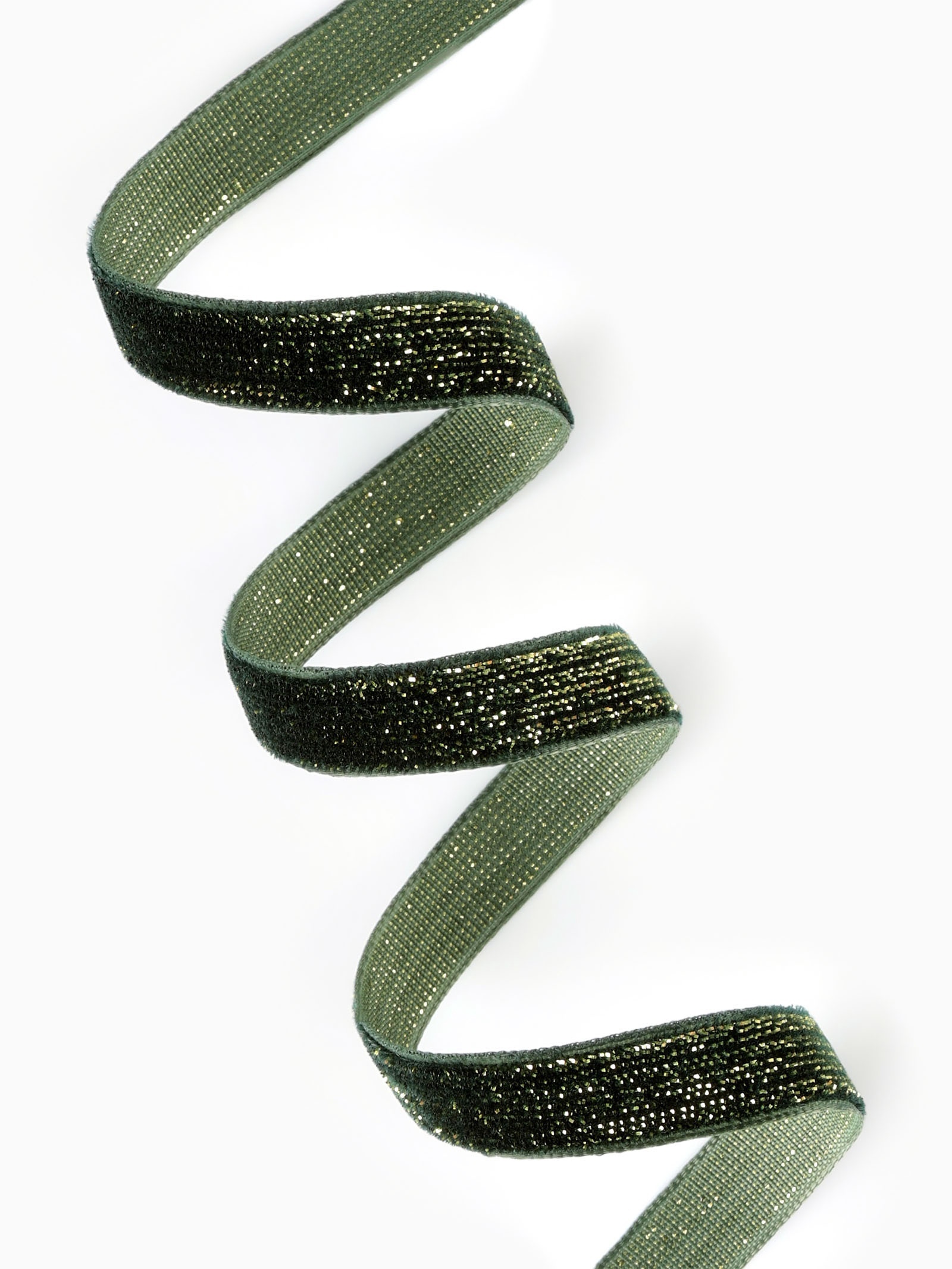Лента бархатная 10мм, №VS5-165 зелёный золотой люрекс АУ 9626576