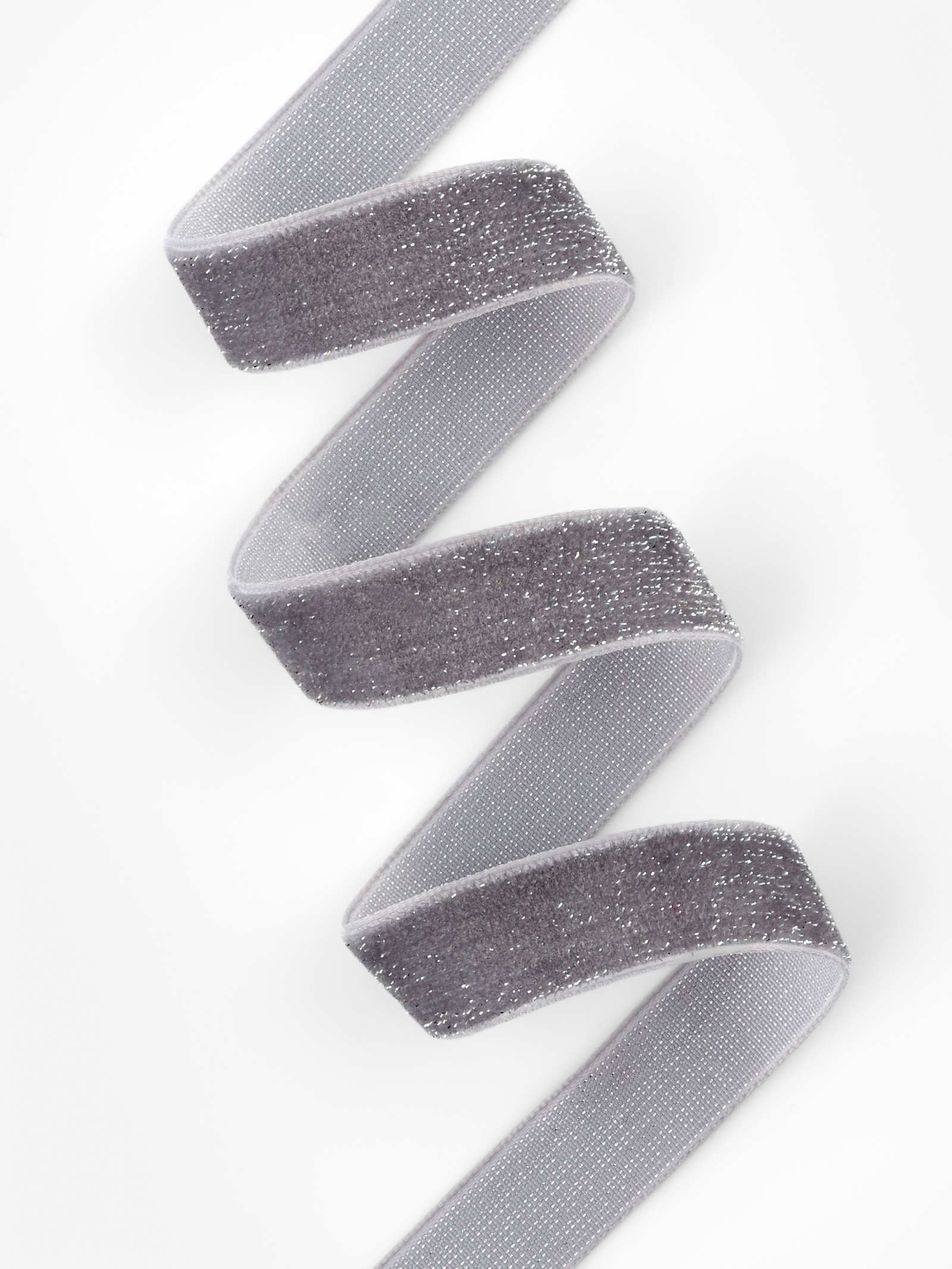Лента бархатная 15мм, №VS5-184 серый серебряный люрекс АУ 9626581