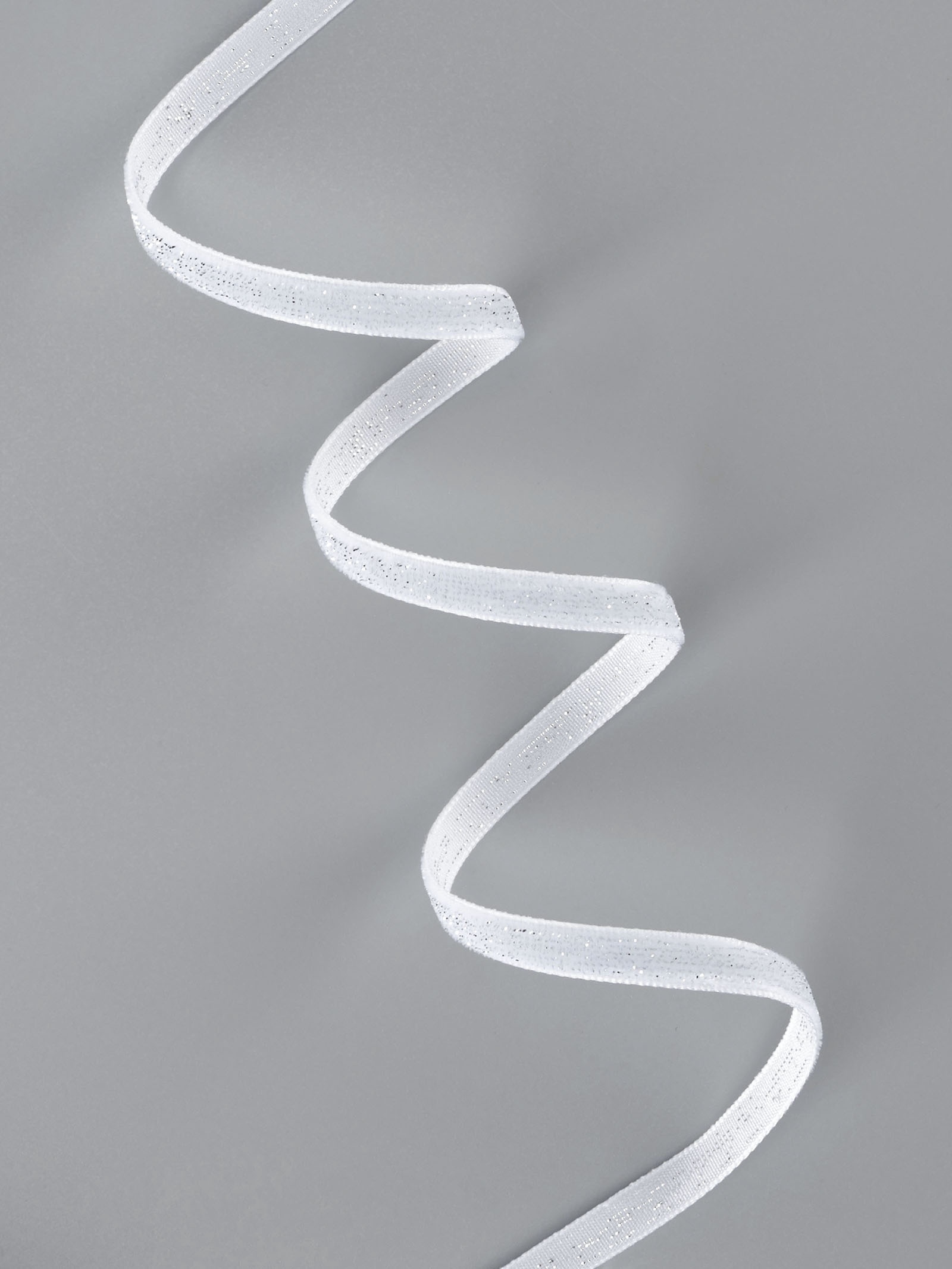 Лента бархатная 6мм, №01 белый серебряный люрекс АУ 9626551