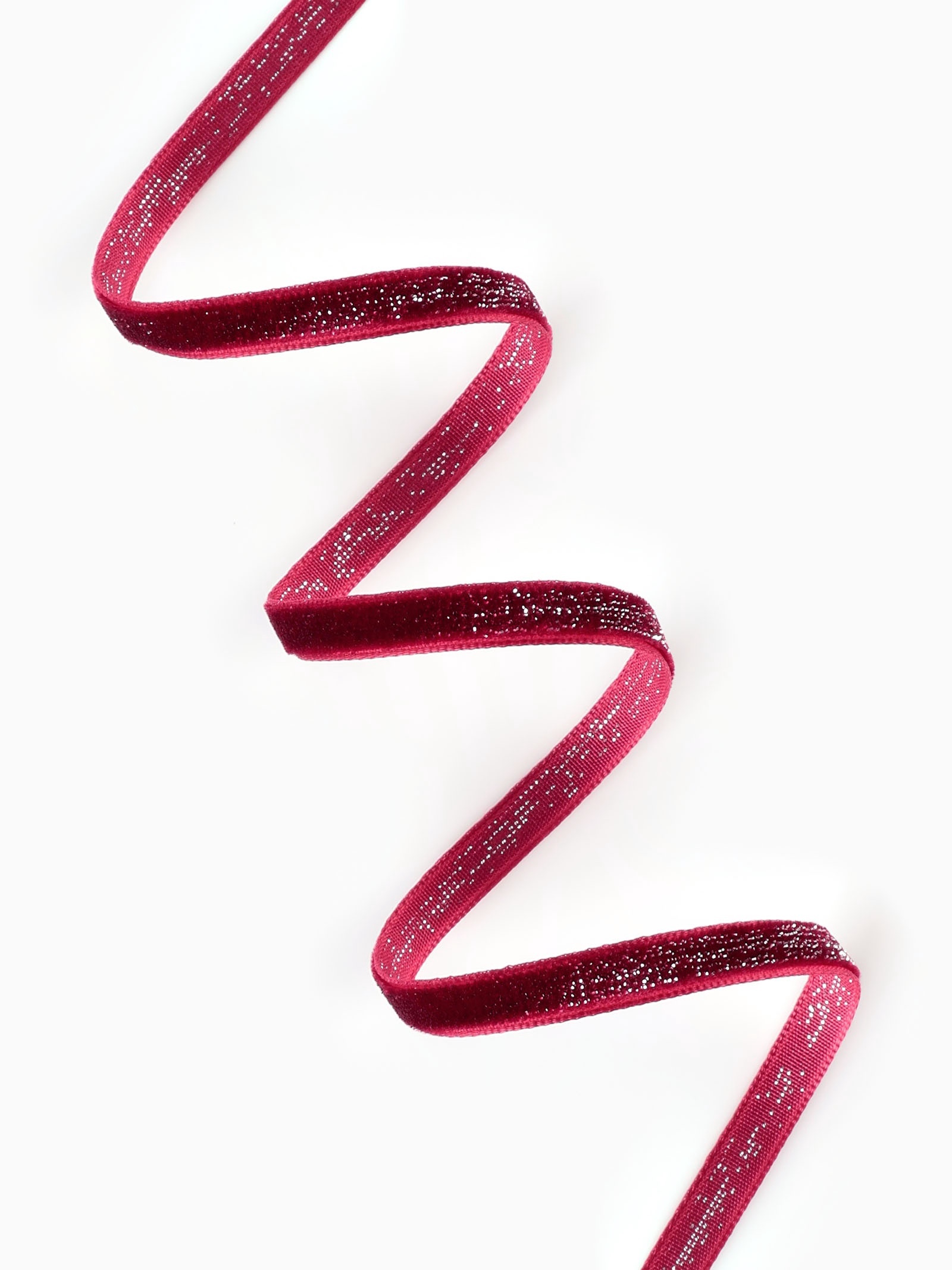 Лента бархатная 6мм, №46 бордовый серебряный люрекс АУ 9626567