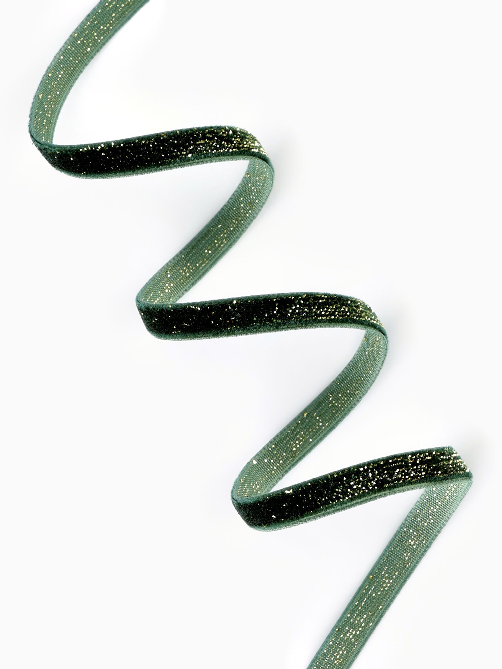 Лента бархатная 6мм, №VS5-165 зелёный золотой люрекс АУ 9626575