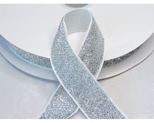 Лента бархатная с люрексом ,3,8 см, (SF- 7318) белый/серебро № 11, РФ