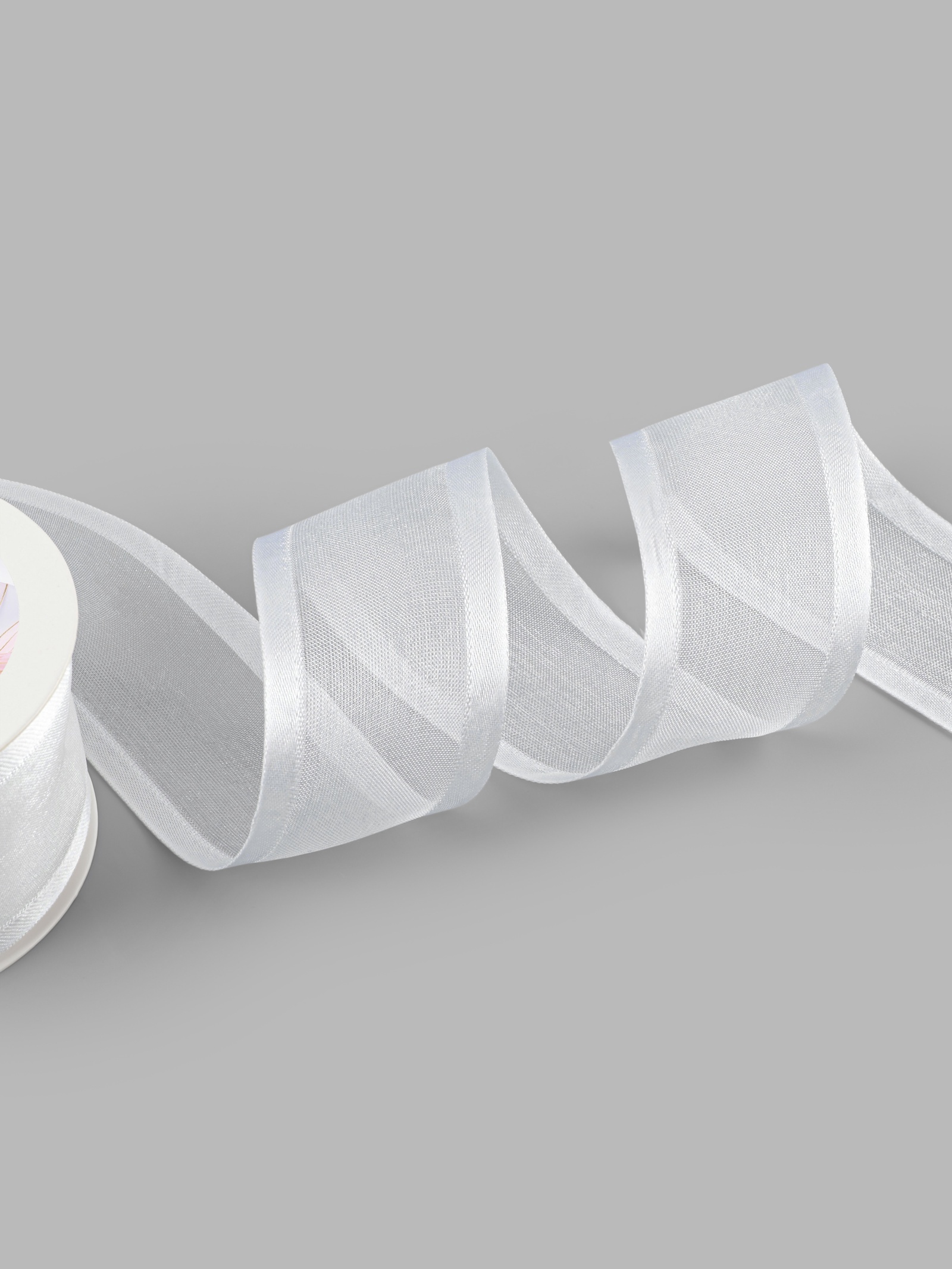 Лента декоративная, капроновая, атласная, 40 мм, белая, 7114106