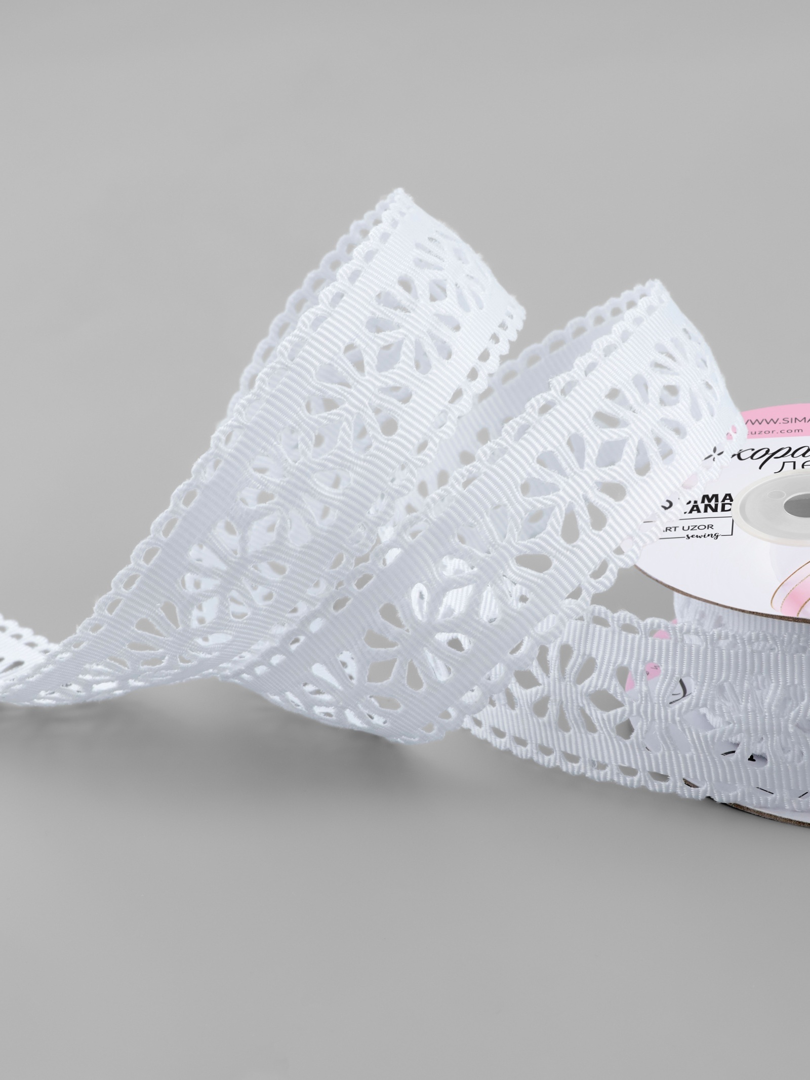 Лента декоративная, репсовая «Ажурные цветы», 25 мм, белая, 9887511
