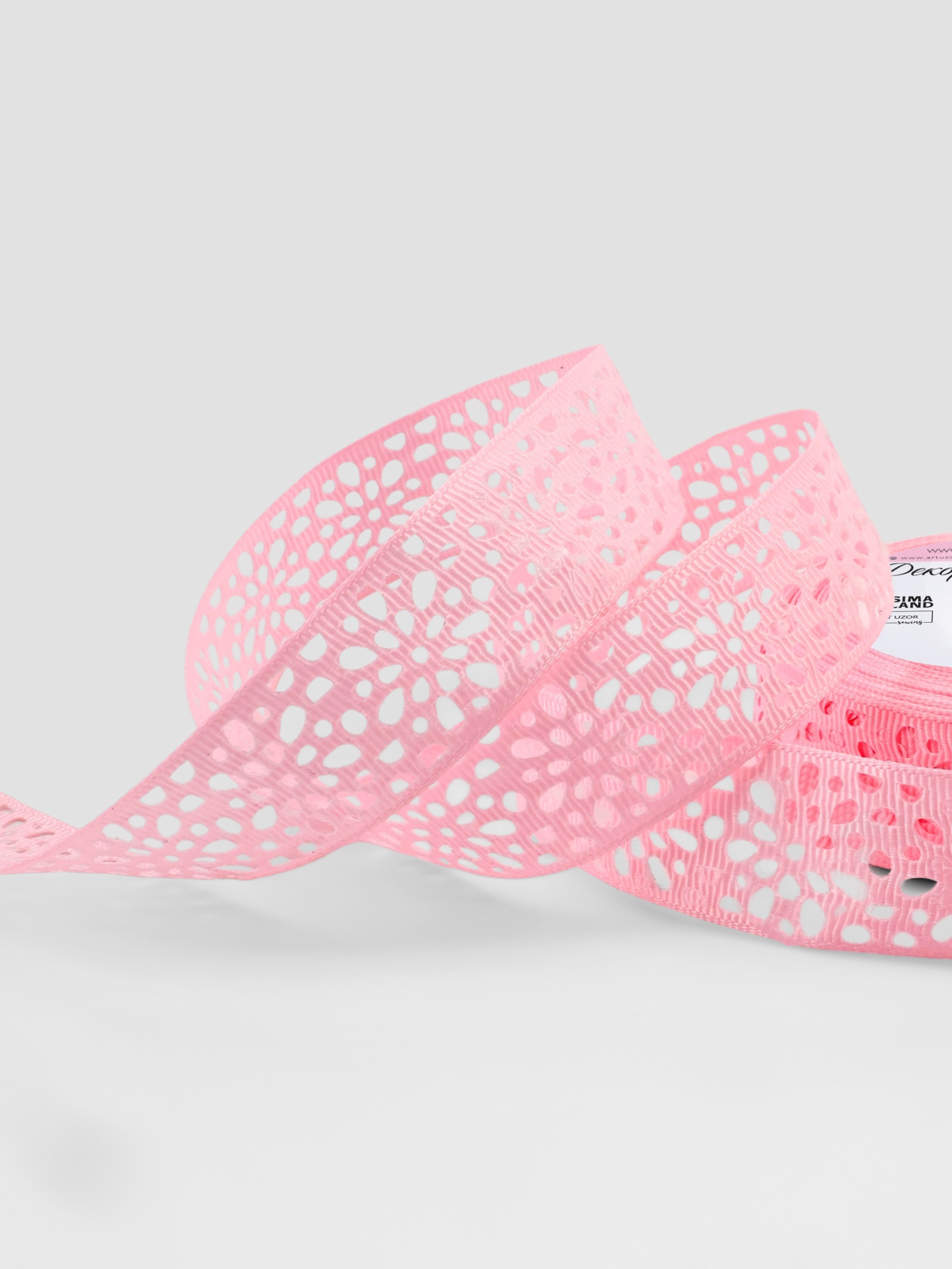 Лента декоративная, репсовая «Ажурные цветы», 25 мм, розовая, 9887514