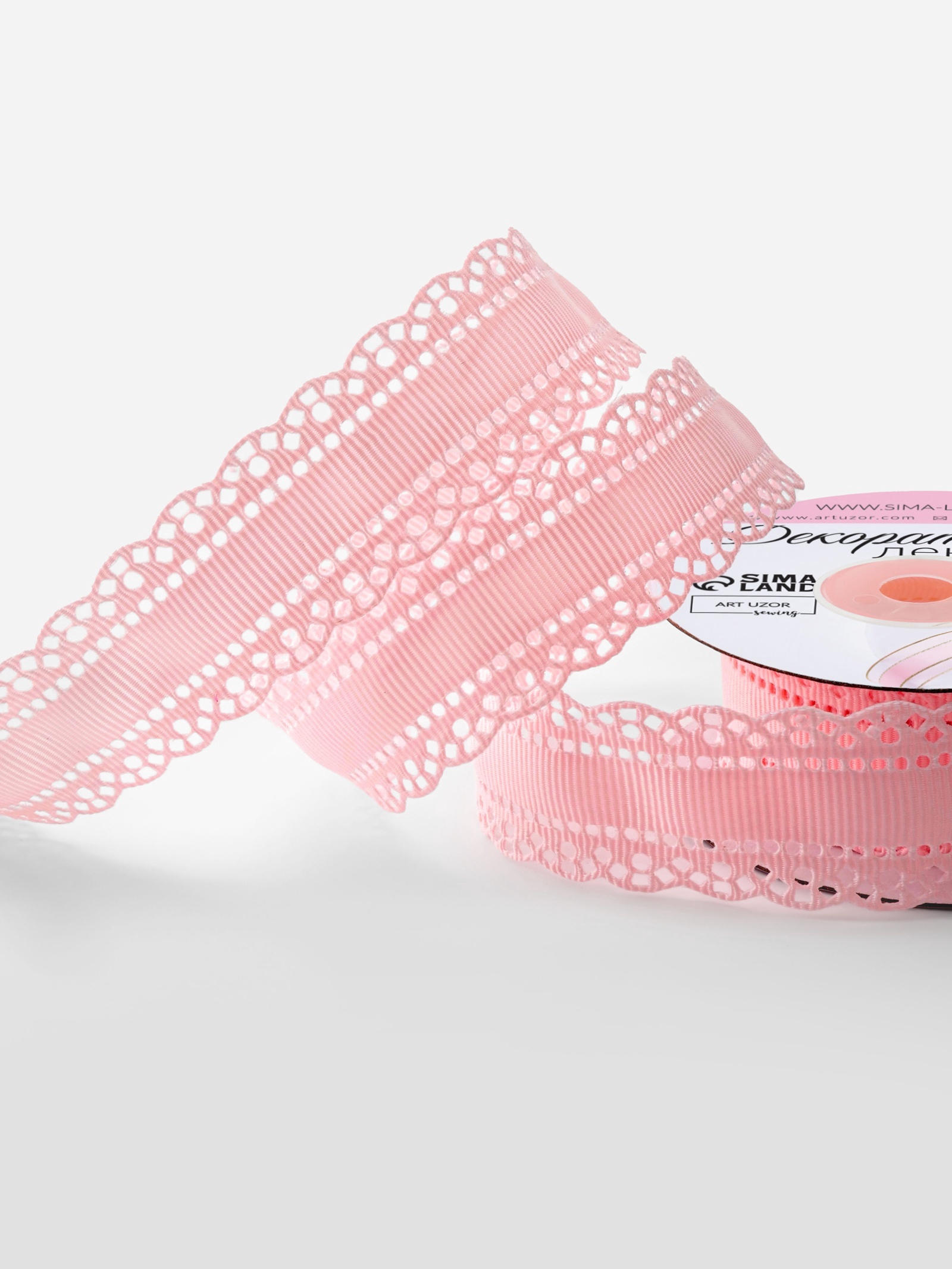 Лента декоративная, репсовая, с ажурным краем, 25 мм, розовая, 9887512