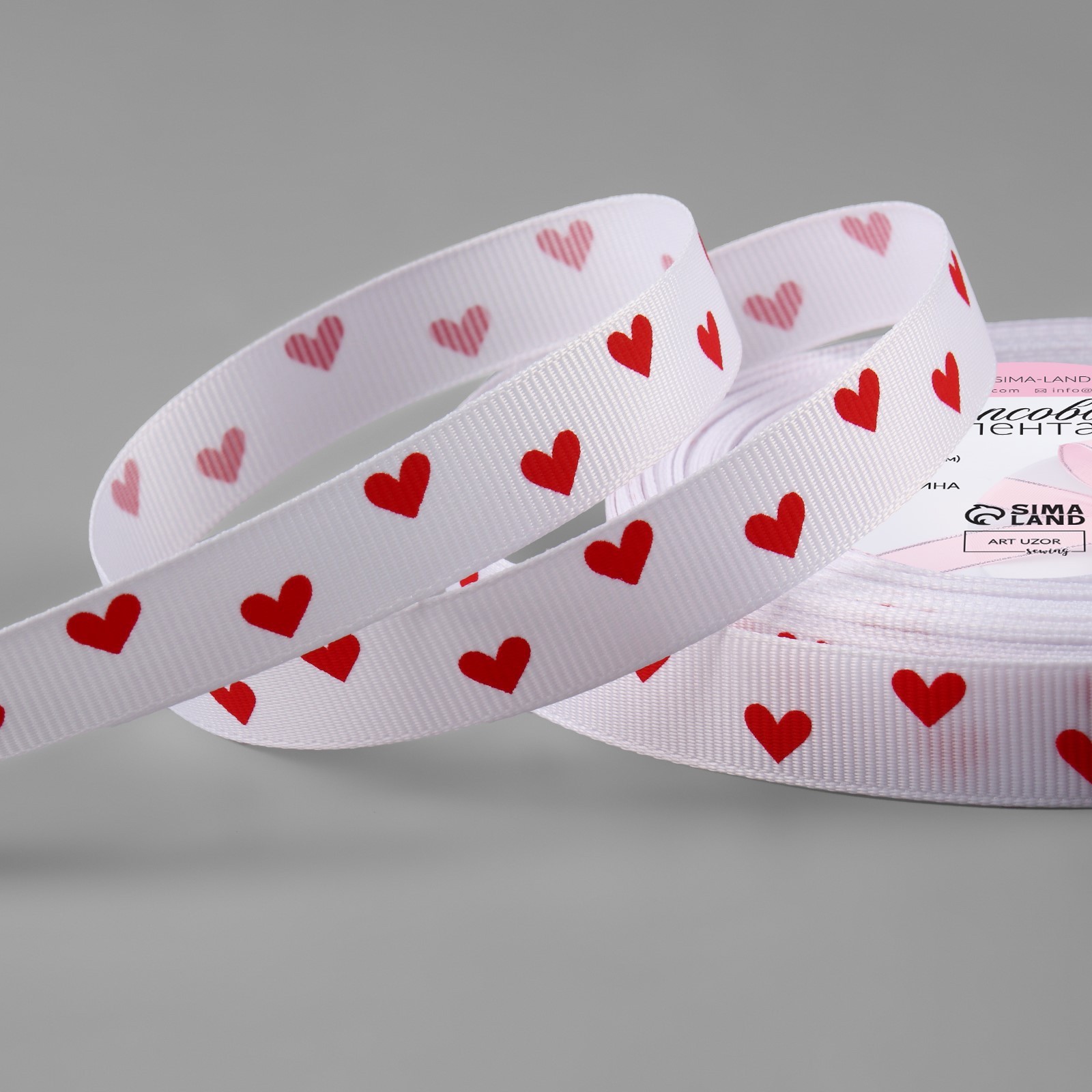 Лента репсовая 15мм, сердечки белый №01 АУ 9327061