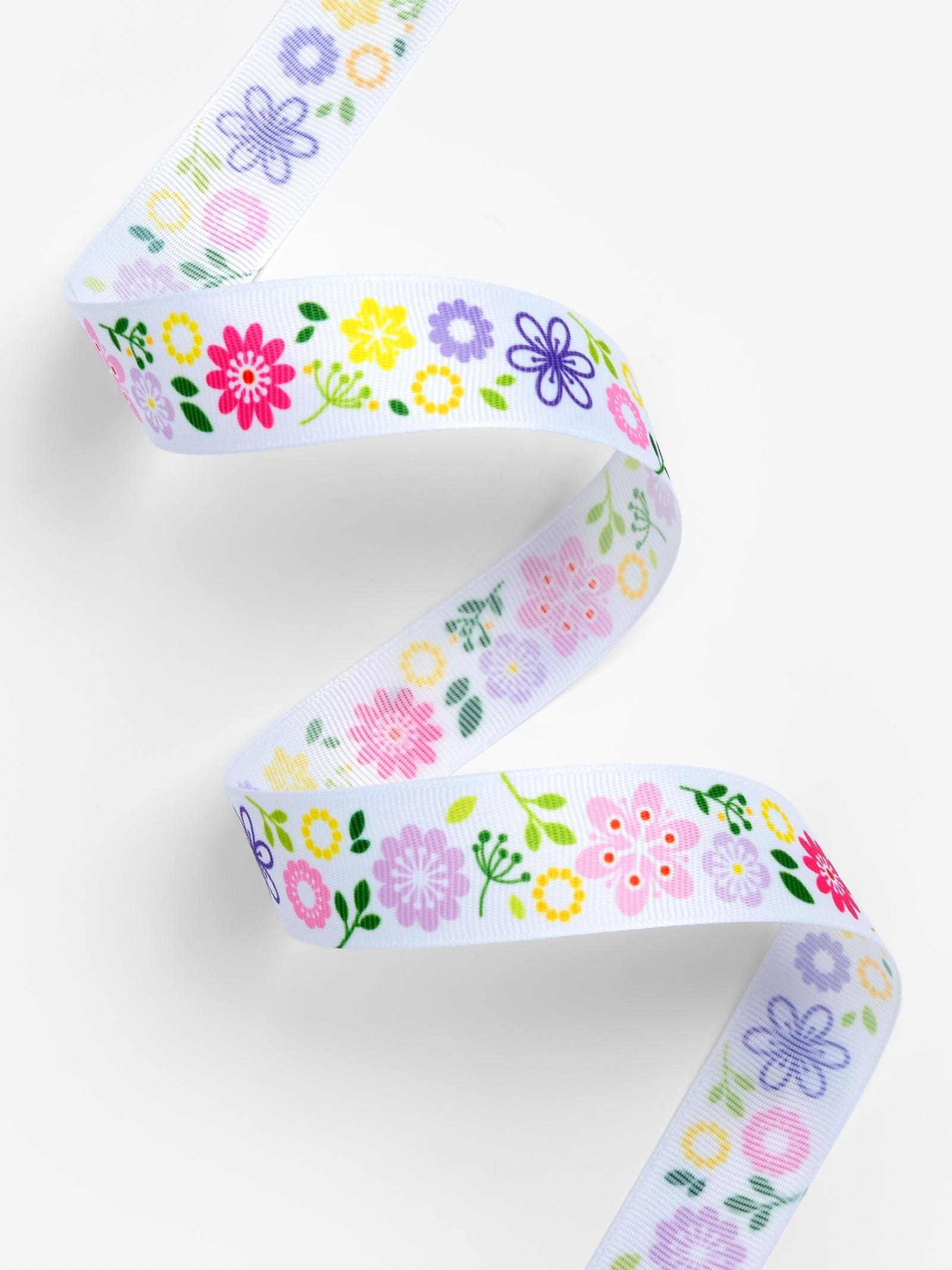 Лента репсовая 25мм, разноцветный венок АУ 10511386