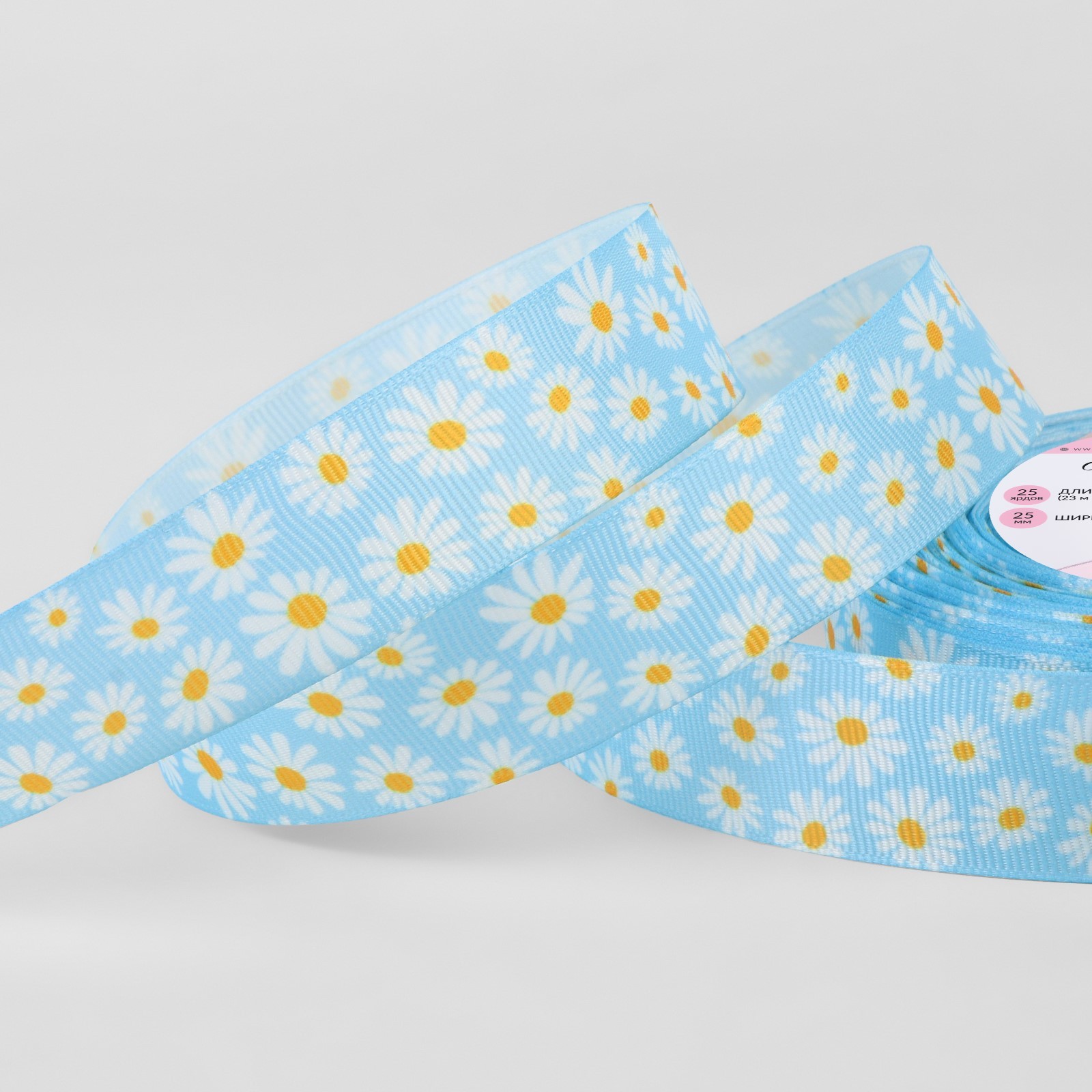 Лента репсовая 25мм, веселые ромашки АУ 9898125