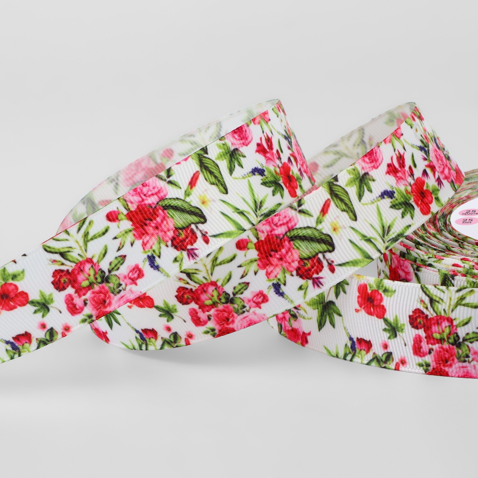 Лента репсовая 25мм,тропический букет АУ 9898124