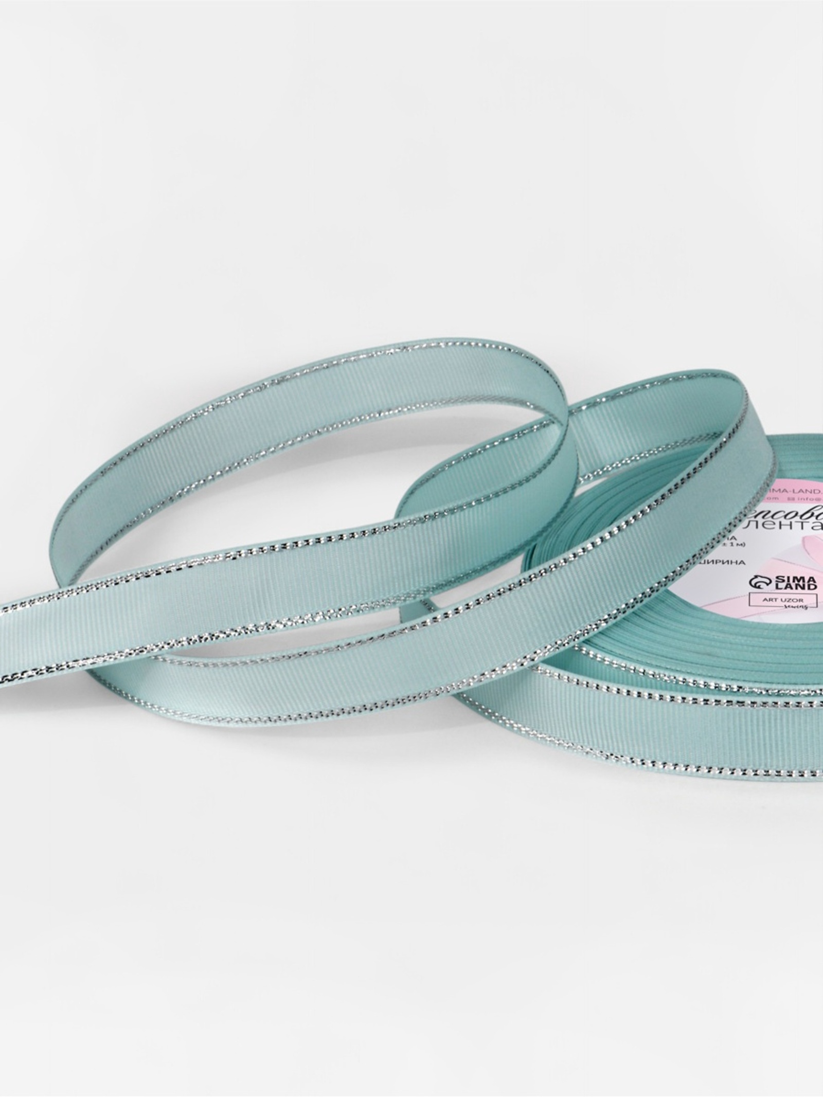 Лента репсовая, с серебряным люрексом, 15 мм, светло-голубая №013, 10508007