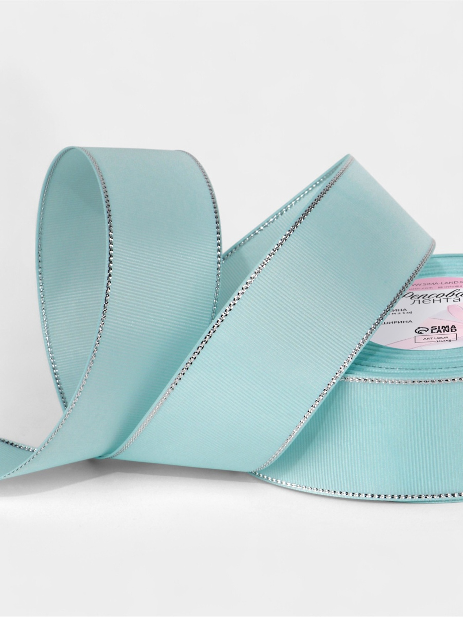 Лента репсовая, с серебряным люрексом, 40 мм. светло-голубая №013, 10508038