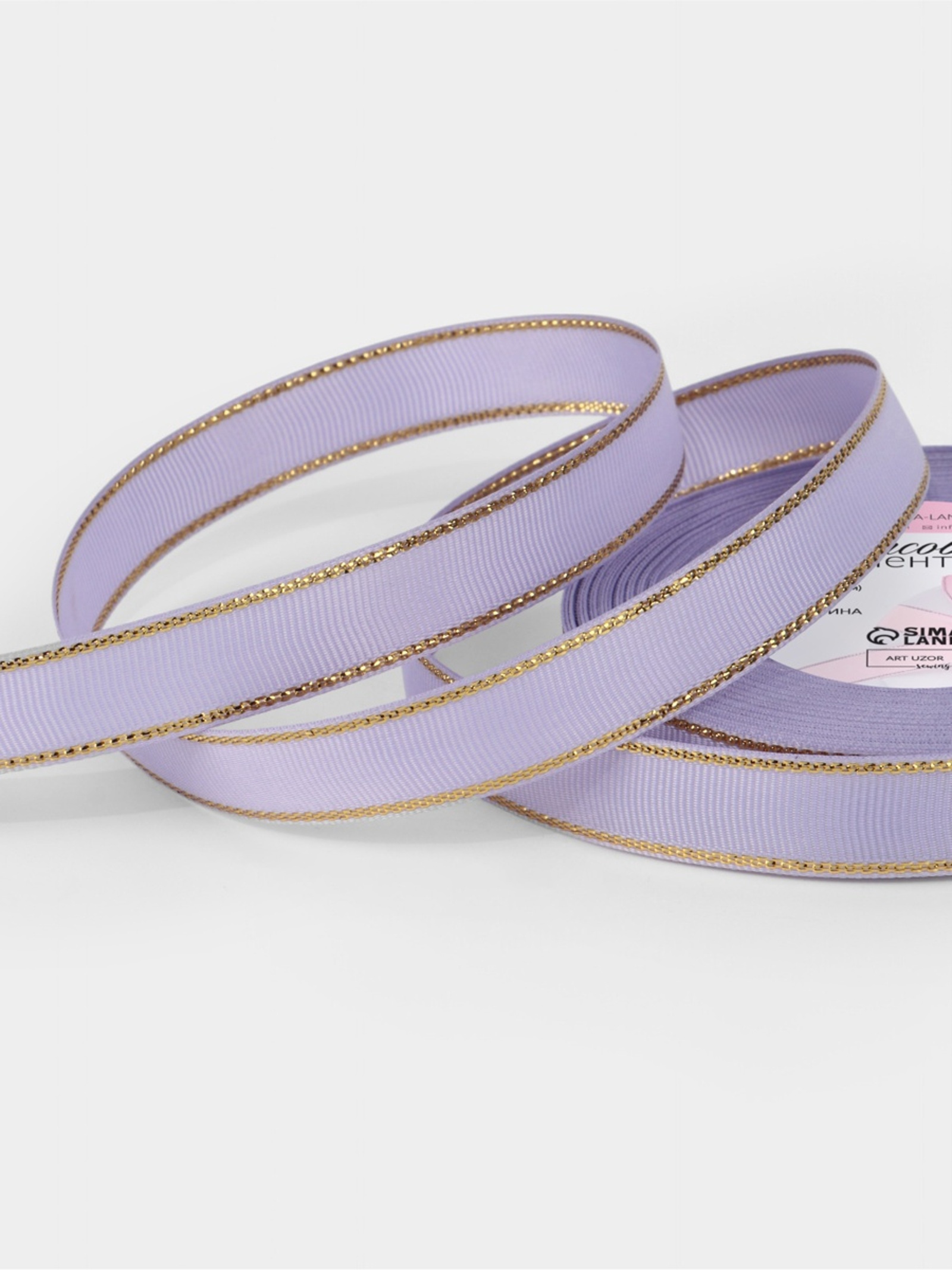 Лента репсовая, с золотым люрексом, 15 мм, , сиреневая №021, 10508001