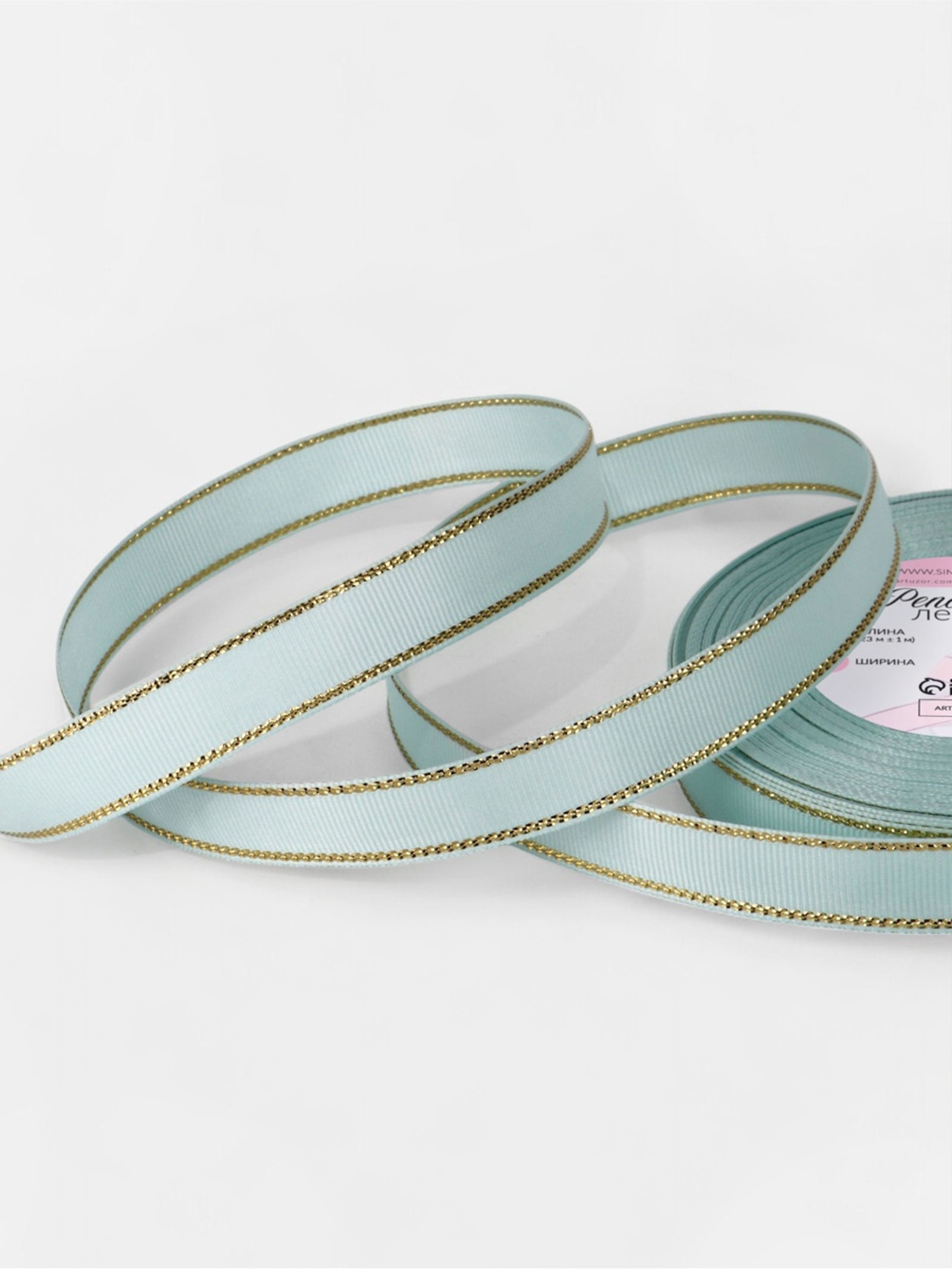 Лента репсовая, с золотым люрексом, 15 мм, светло-голубая №013, 10508002