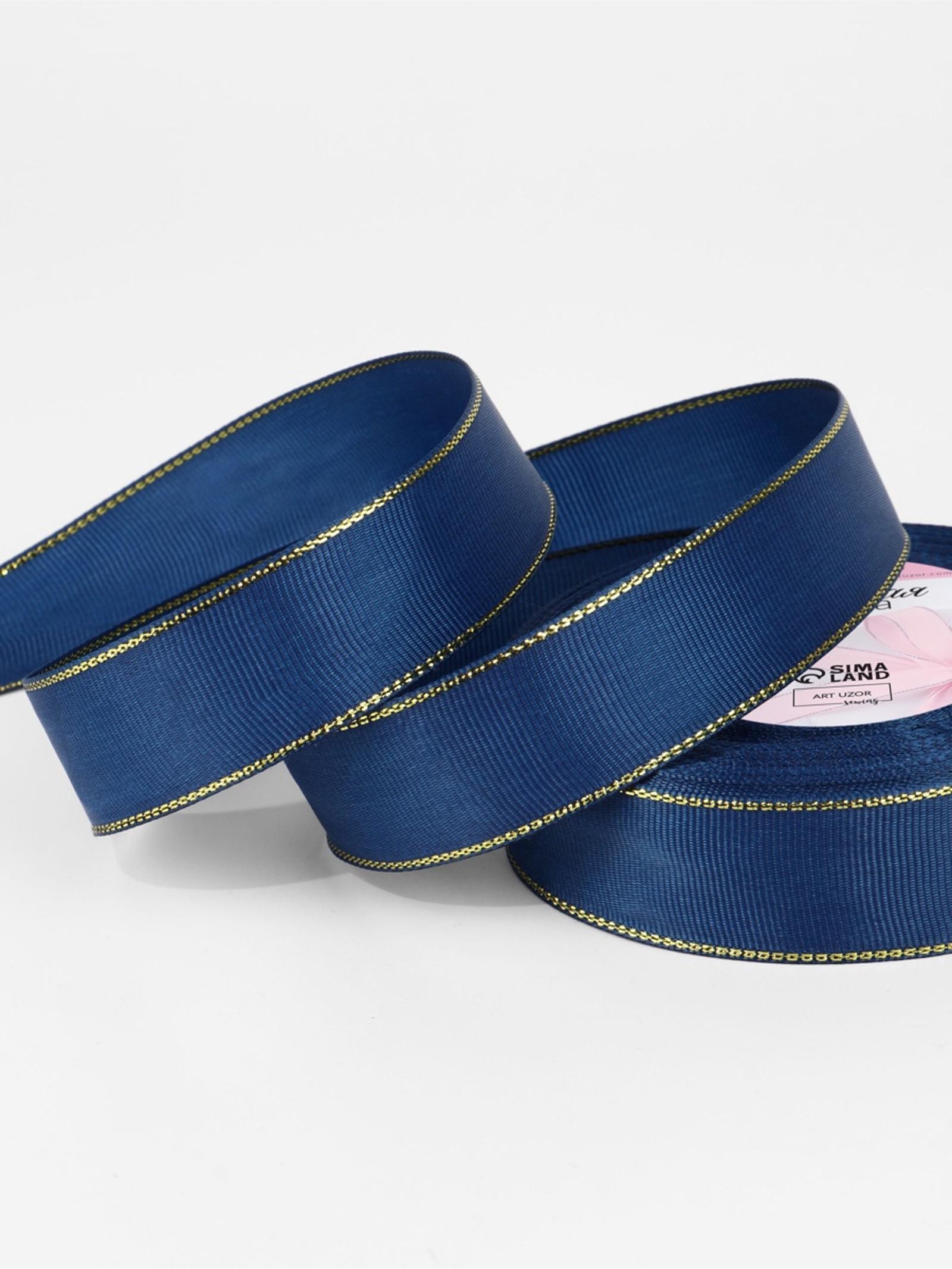 Лента репсовая, с золотым люрексом, 25 мм, тёмно-синяя №038, 10508014