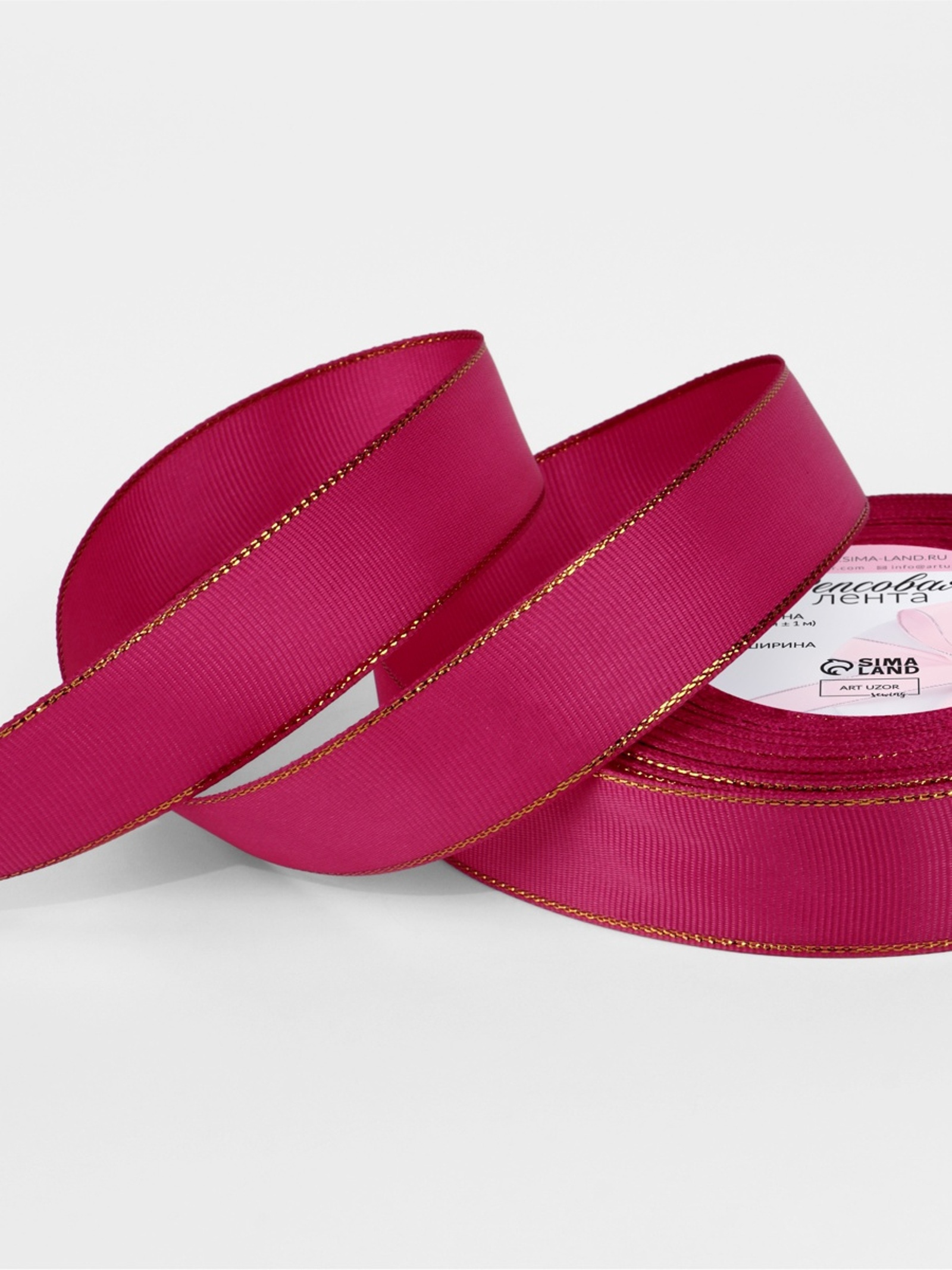 Лента репсовая, с золотым люрексом, 25 мм, ярко-розовая №028, 10508013