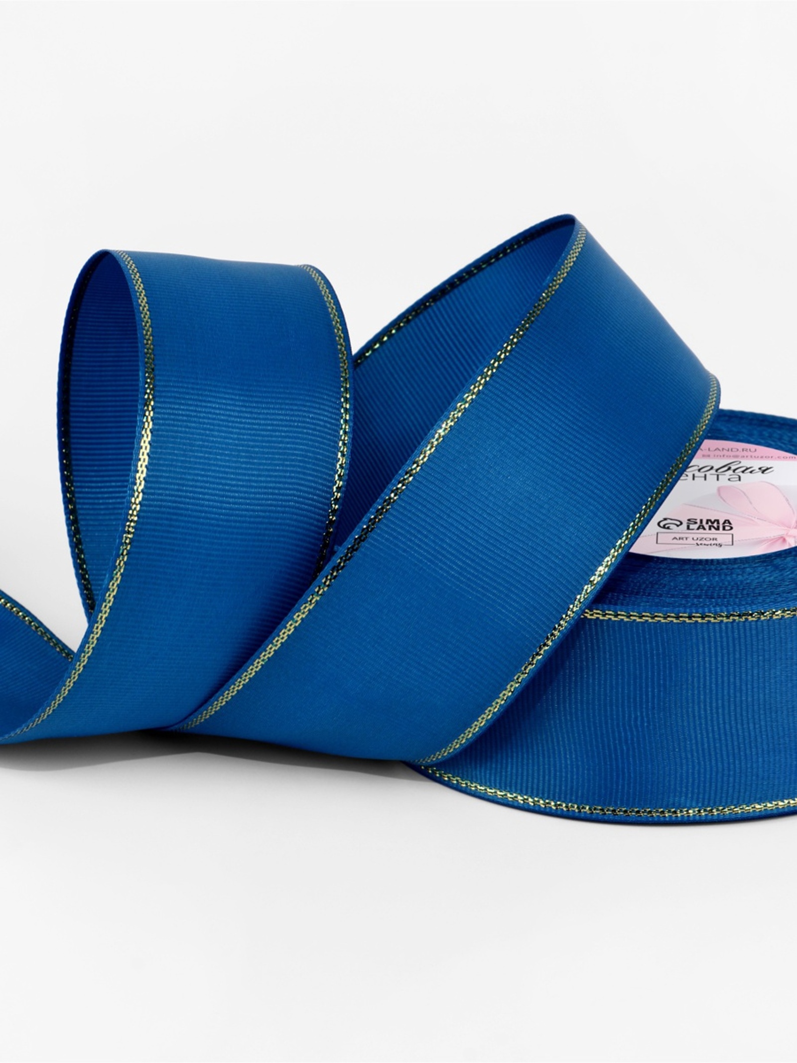 Лента репсовая, с золотым люрексом, 40 мм, синяя №040, 10508047