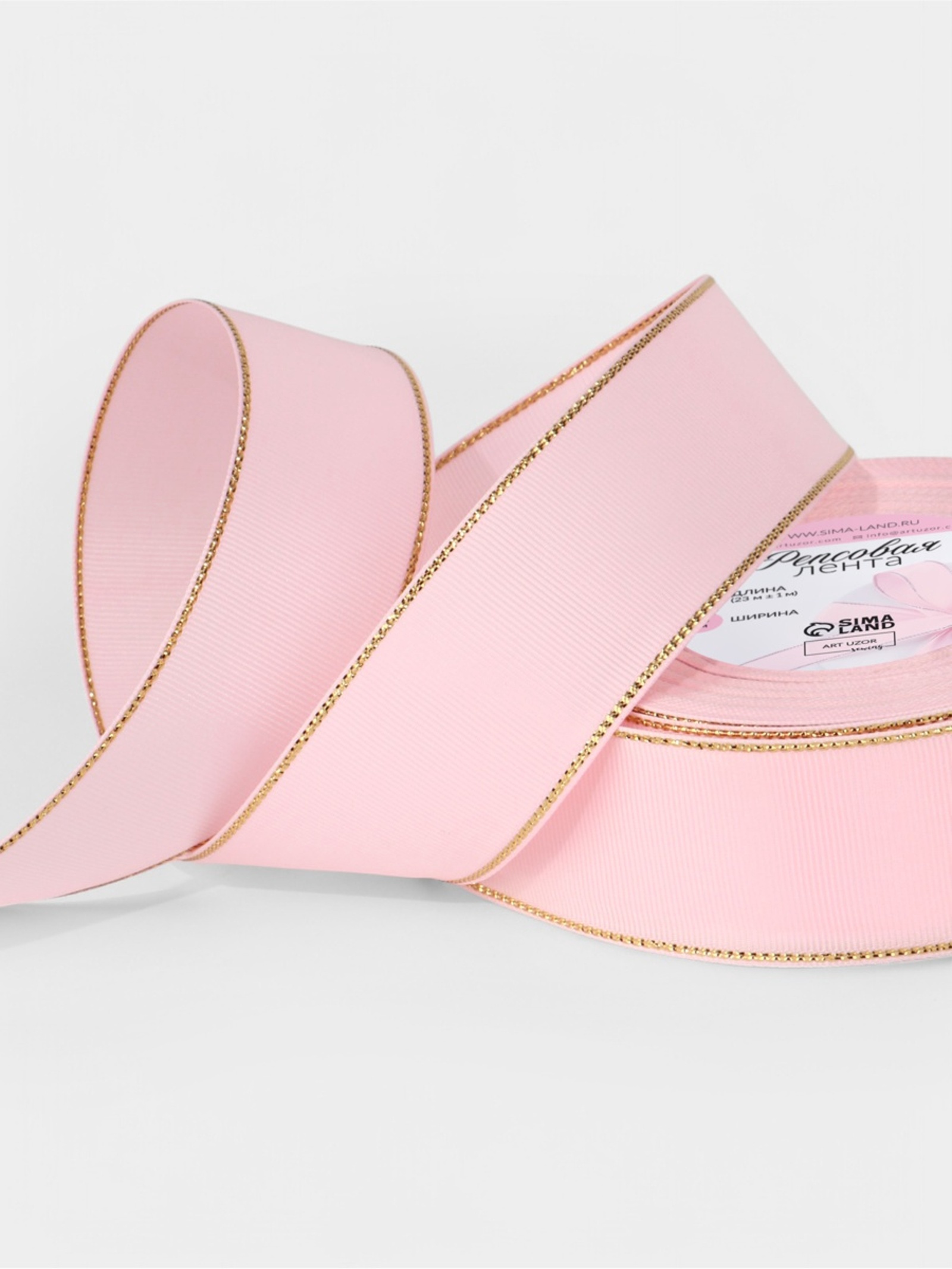 Лента репсовая, с золотым люрексом, 40 мм, светло-розовая №004, 10508031