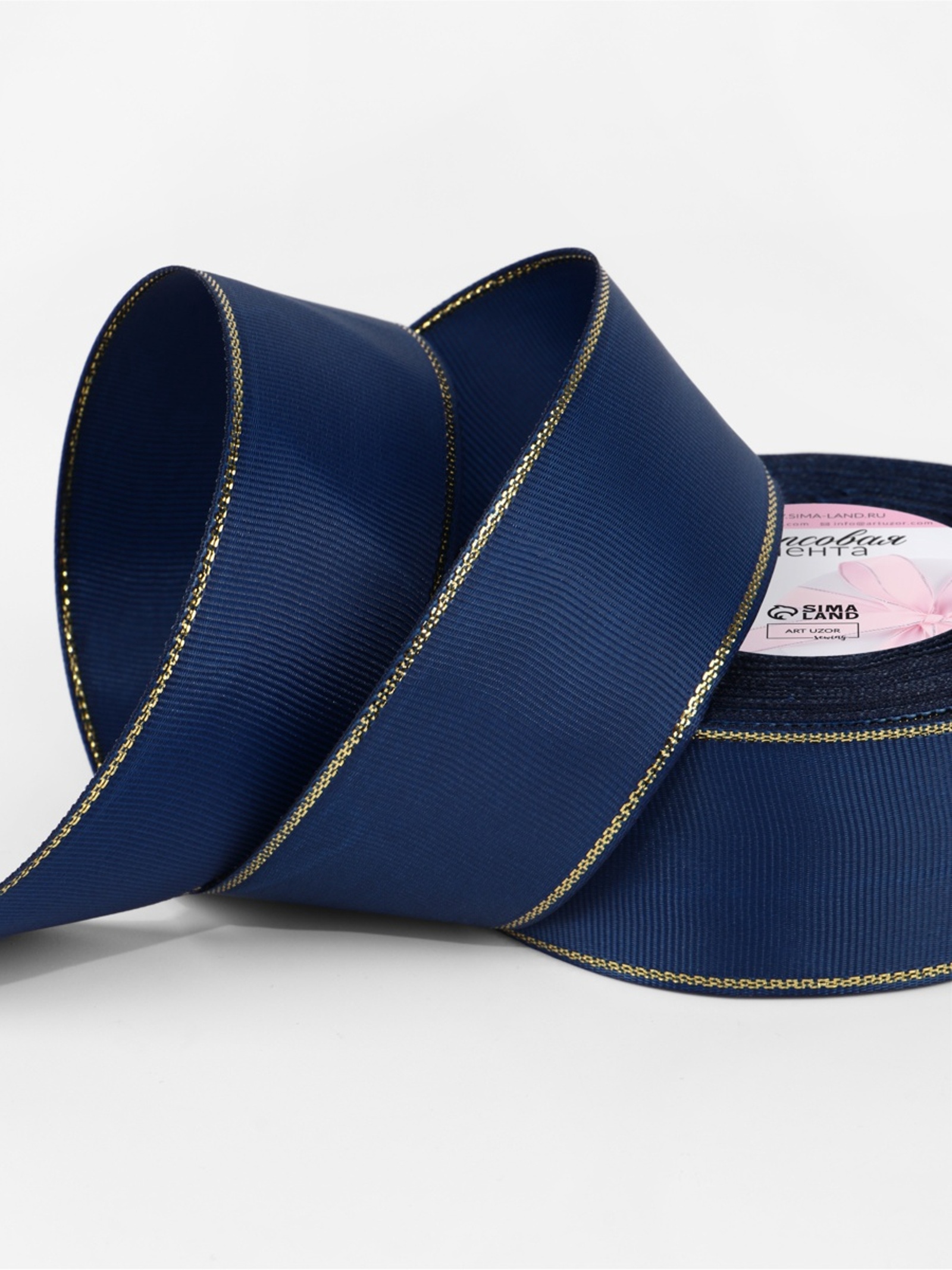Лента репсовая, с золотым люрексом, 40 мм, тёмно-синяя №038, 10508045