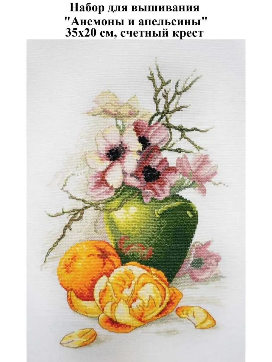 Набор для вышивания "Анемоны и апельсины" по картине К. Кляйн, размер 35x20 см, счетный крест. Наборы российского бренда Марья Искусница более 8 лет продаются на рынке рукоделия. Название марки Марья Искусница запатентовано. Отличительной чертой наборов стало удачное сочетание стильных дизайнов, качественных комплектующих и доступной цены. Дизайнеры Марьи Искусницы находятся в постоянном поиске, разрабатывая широкий спектр оригинальных и уникальных дизайнов по тематике и исполнению. Каждая схема детально прорабатывается вручную - это неотъемлемое кредо наборов Марья Искусница. Состав: канва Aida 16 молочная, мулине Finca 32 цв., игла, инструкция