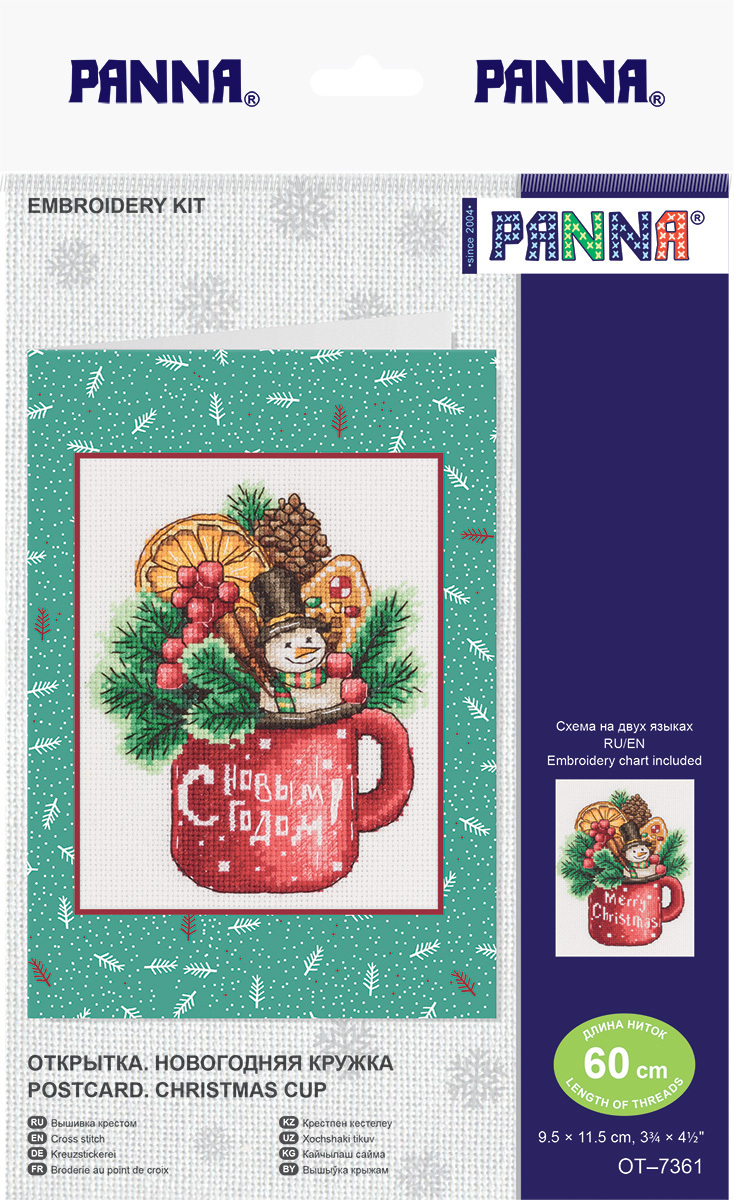 В набор для вышивания PANNA входит: аппретированная канва Gamma Aida 18, хлопчатобумажные нитки мулине Gamma, игла для вышивания Gamma, паспарту для оформления открытки, клеевой вкладыш А5 для оформления открытки, цветная схема на двух языках и инструкция по вышиванию.