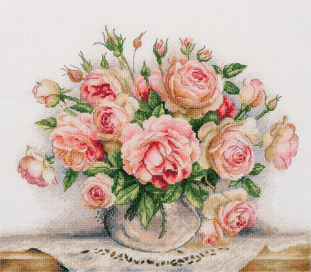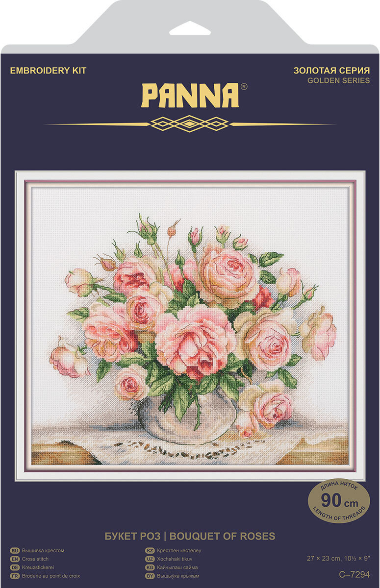 В PANNA набор для вышивания C-7294 "Букет роз" входят: канва "Gamma" страмин К06, нитки акриловые, игла "Gamma", цветная схема, инструкция.