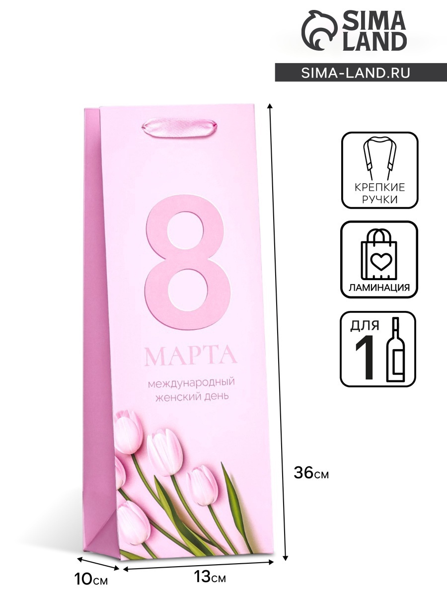Пакет ламинированный под бутылку "8 Марта",13 х 36 х 10 см 9905815