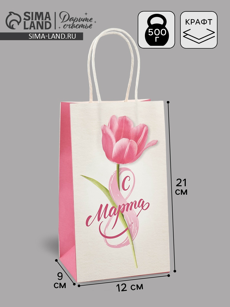 Пакет подарочный крафт «С 8 Марта», 12 × 21 × 9 см 4544680