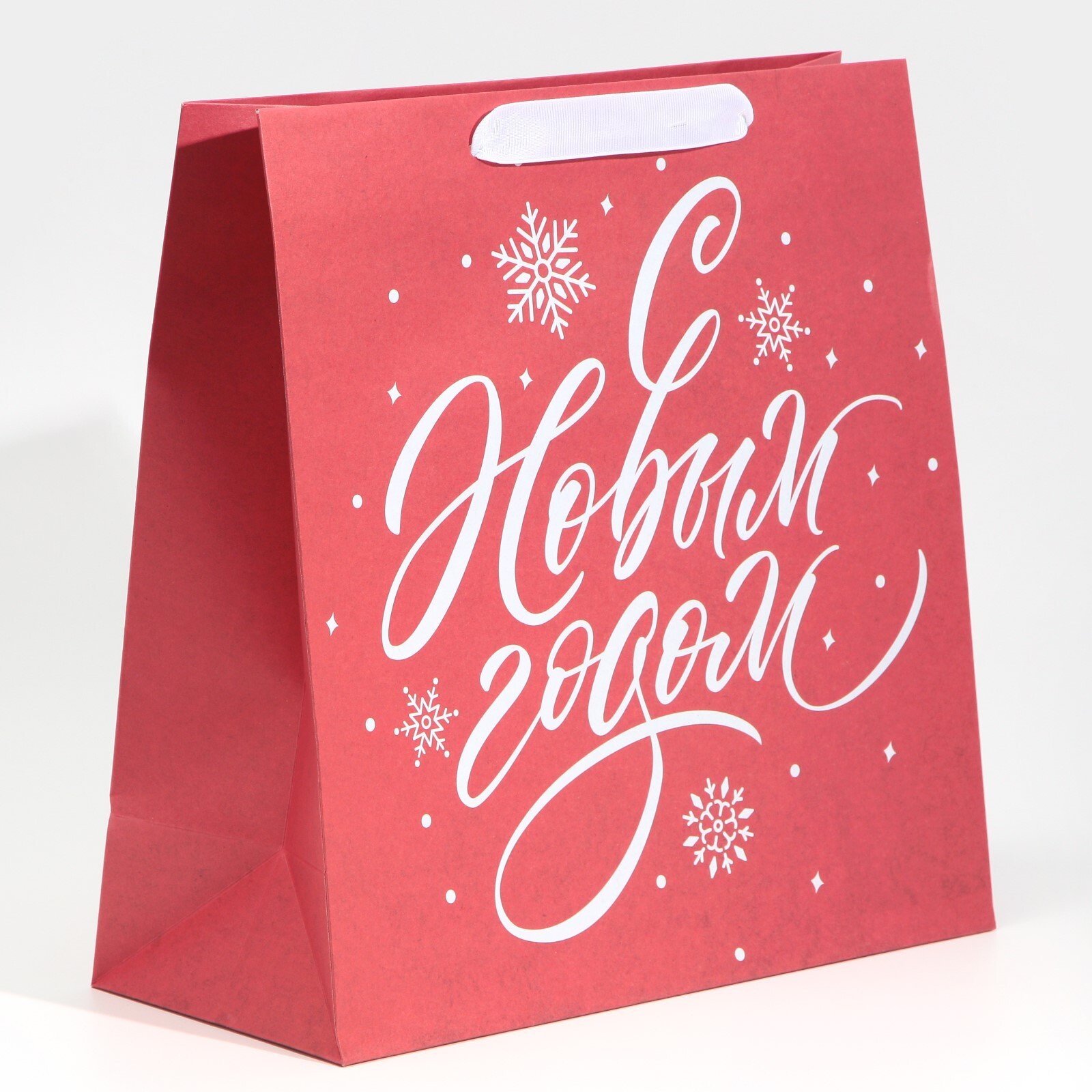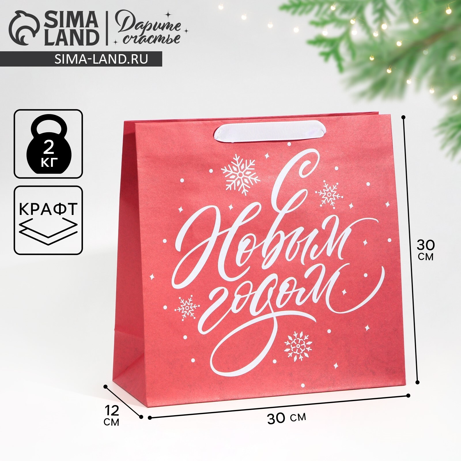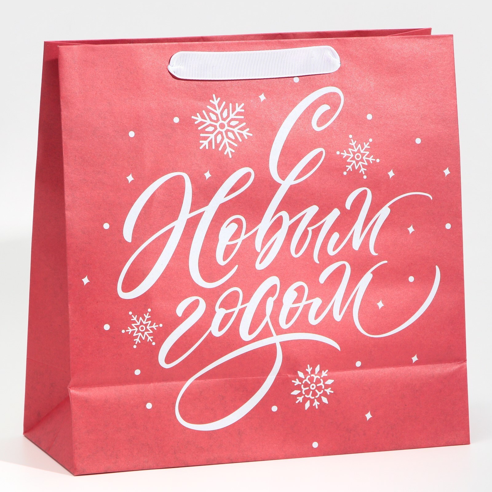 Пакет подарочный новогодний крафтовый квадратный «Новогодний», 30 х 30 х 12 см, 7705483