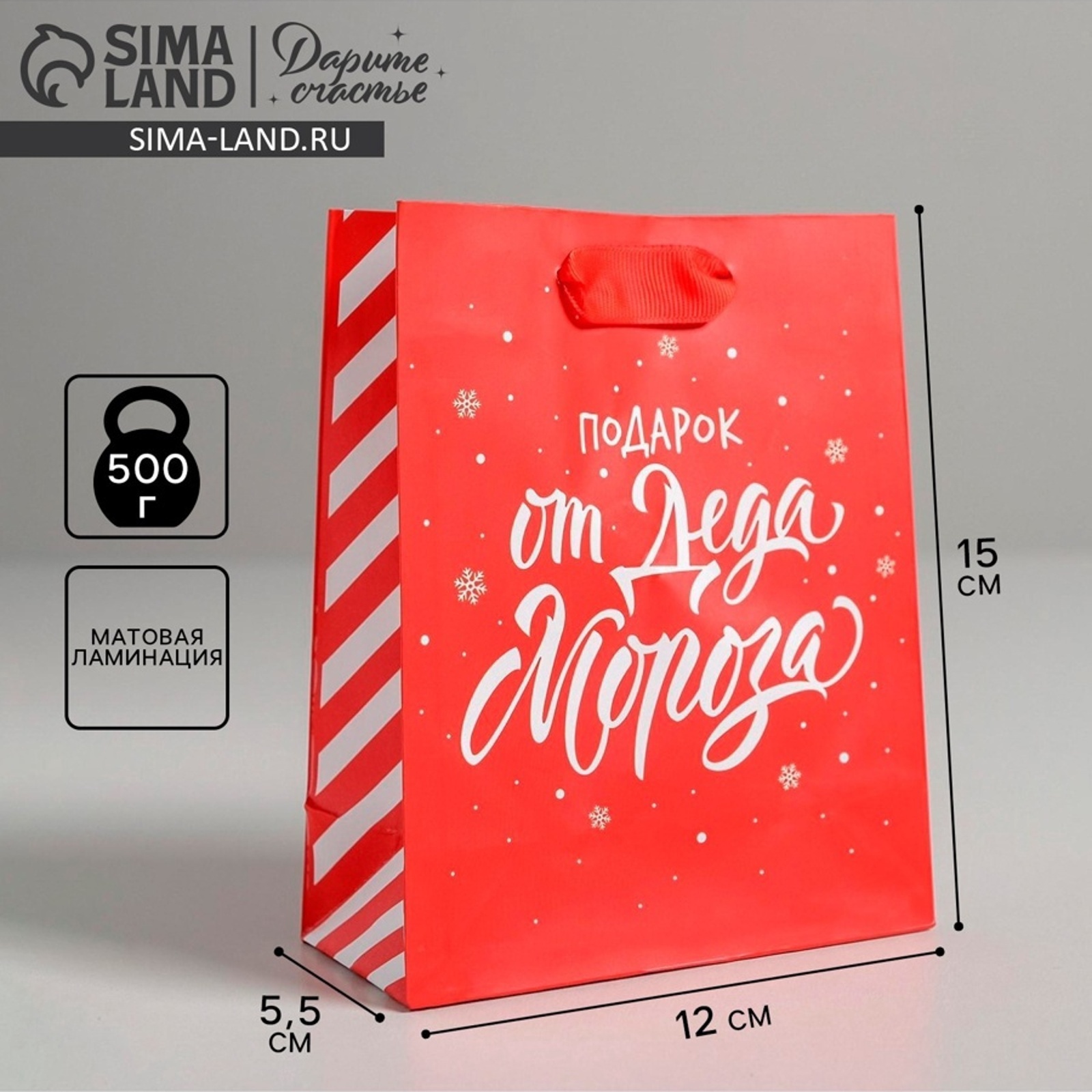 Пакет подарочный новогодний ламинированный «Подарок от Деда Мороза», S 12 х 15 х 5.5 см, 4843278