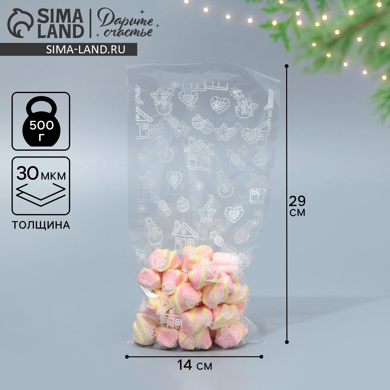Пакет подарочный новогодний пропиленовый «Домик», 14 х 29 см, 9716085