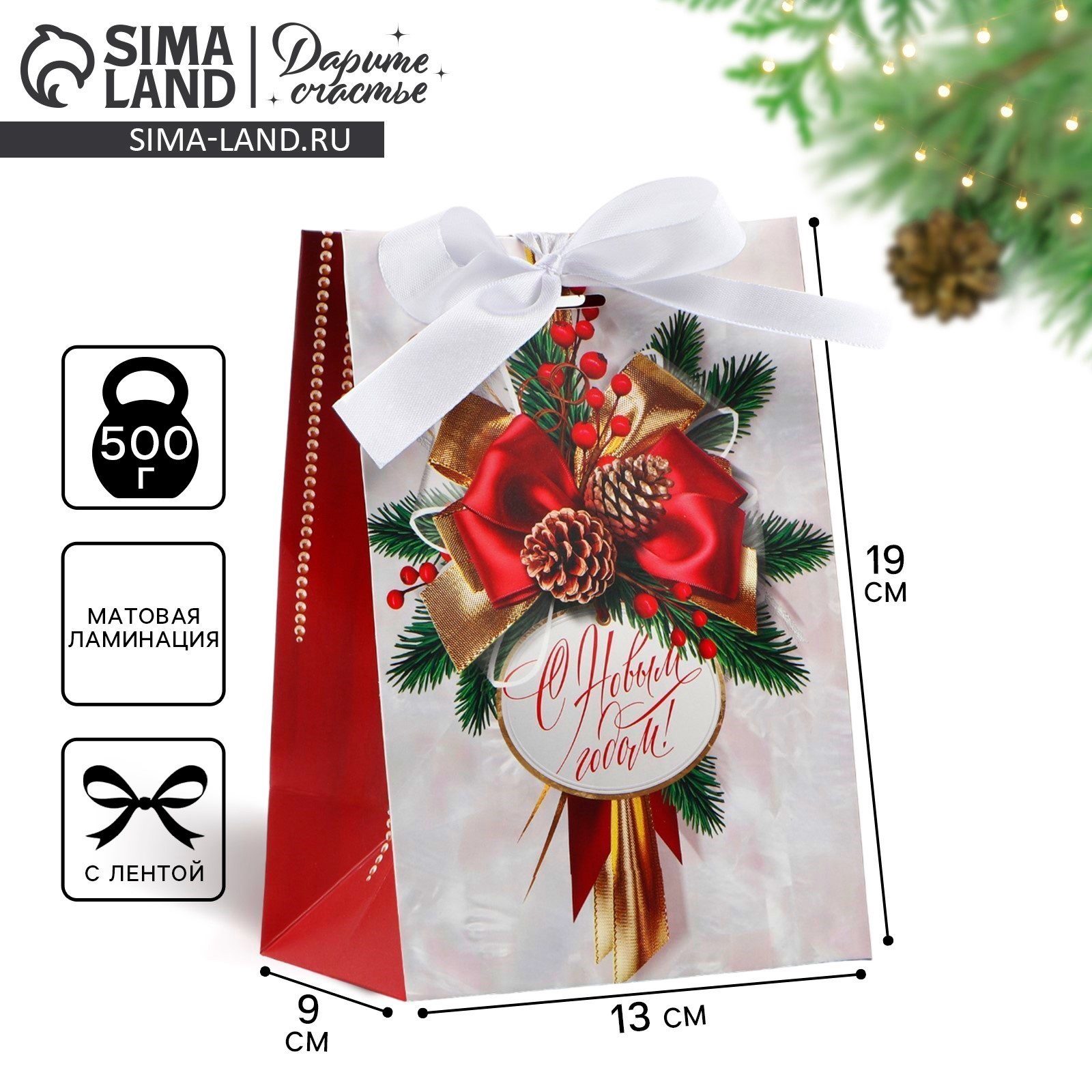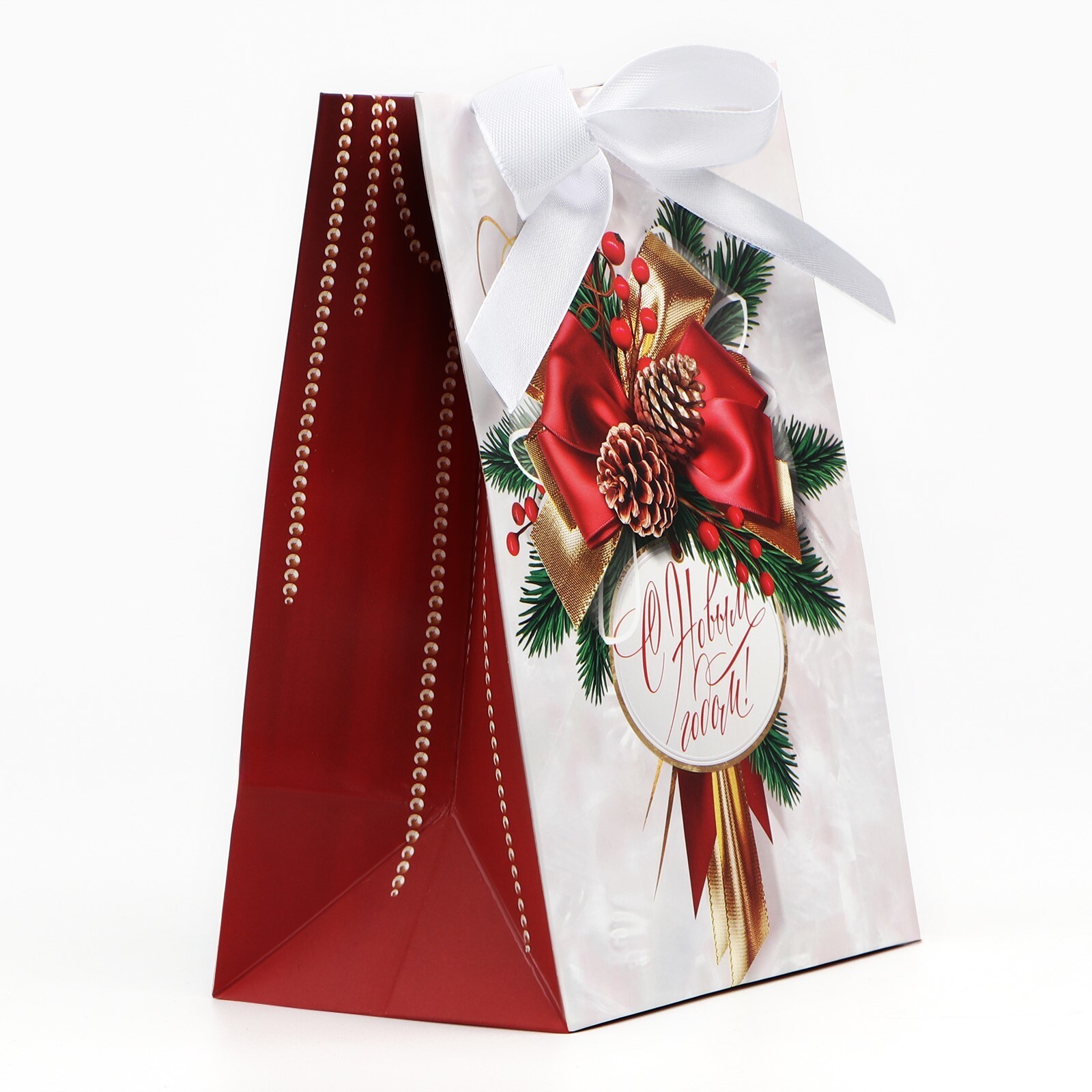 Пакет подарочный новогодний с лентой «Новый год», 13 х 19 х 9 см, 10346346