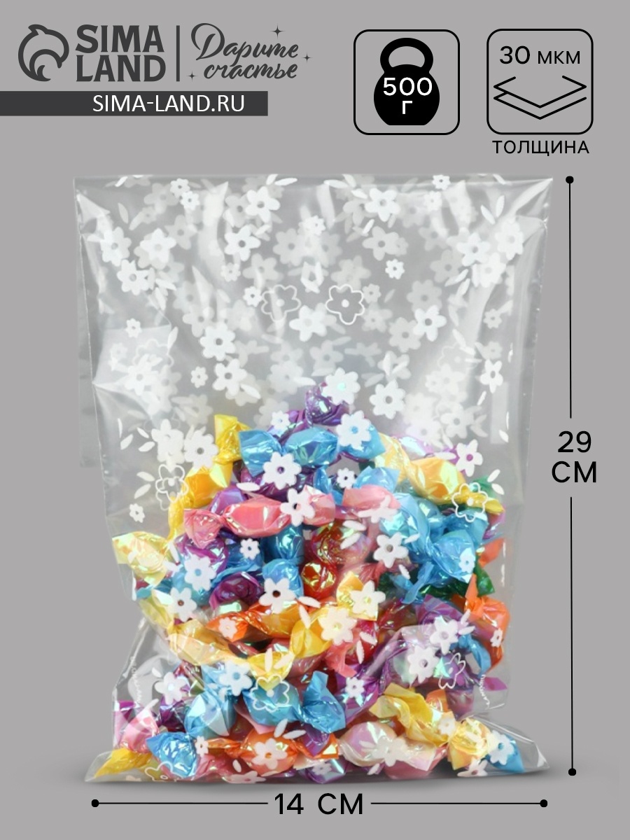 Пакет подарочный пропиленовый «Цветочки», 14×29 см, 10928042, Россия