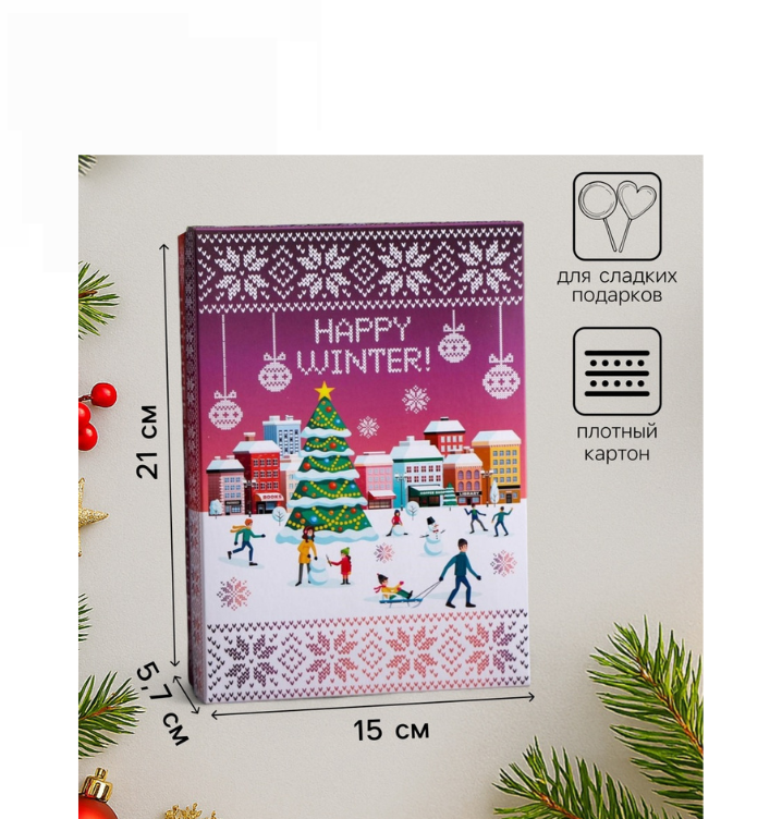 Подарочная коробка сборная «Счастливой зимы», 21×15×5.7 см, + тишью,7119681