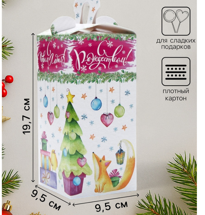 Подарочная новогодняя коробка "Акварельная серия. Подарок", 9.5×9.5×19.7 см, 7063716