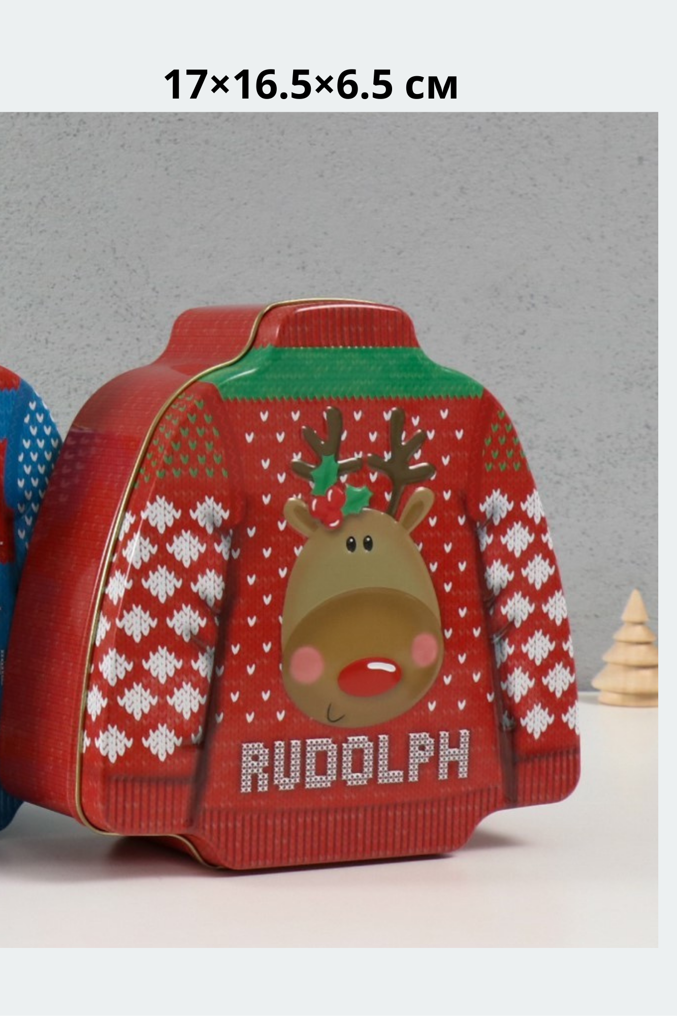 Шкатулка для подарков «Новогодний свитер», металл, 17×16.5×6.5 см,КРАСНЫЙ, 10500807