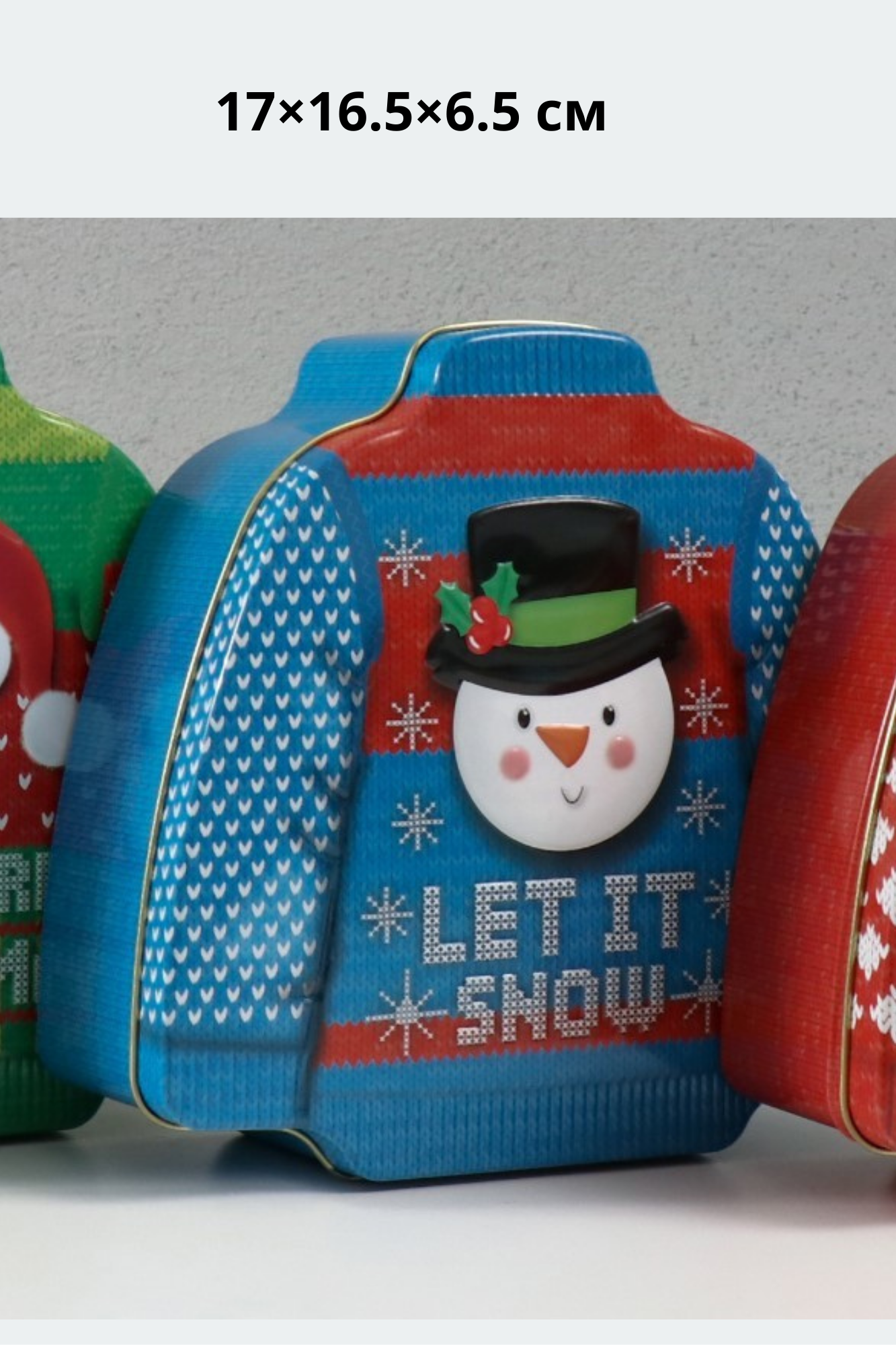 Шкатулка для подарков «Новогодний свитер», металл, 17×16.5×6.5 см,СИНИЙ, 10500807