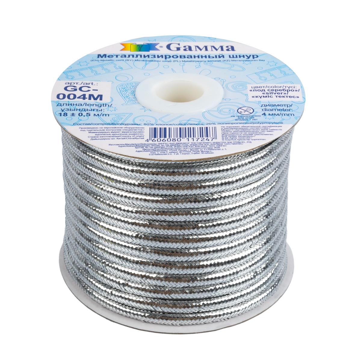 Шнур "Gamma" 4 мм, металлизированный серебро