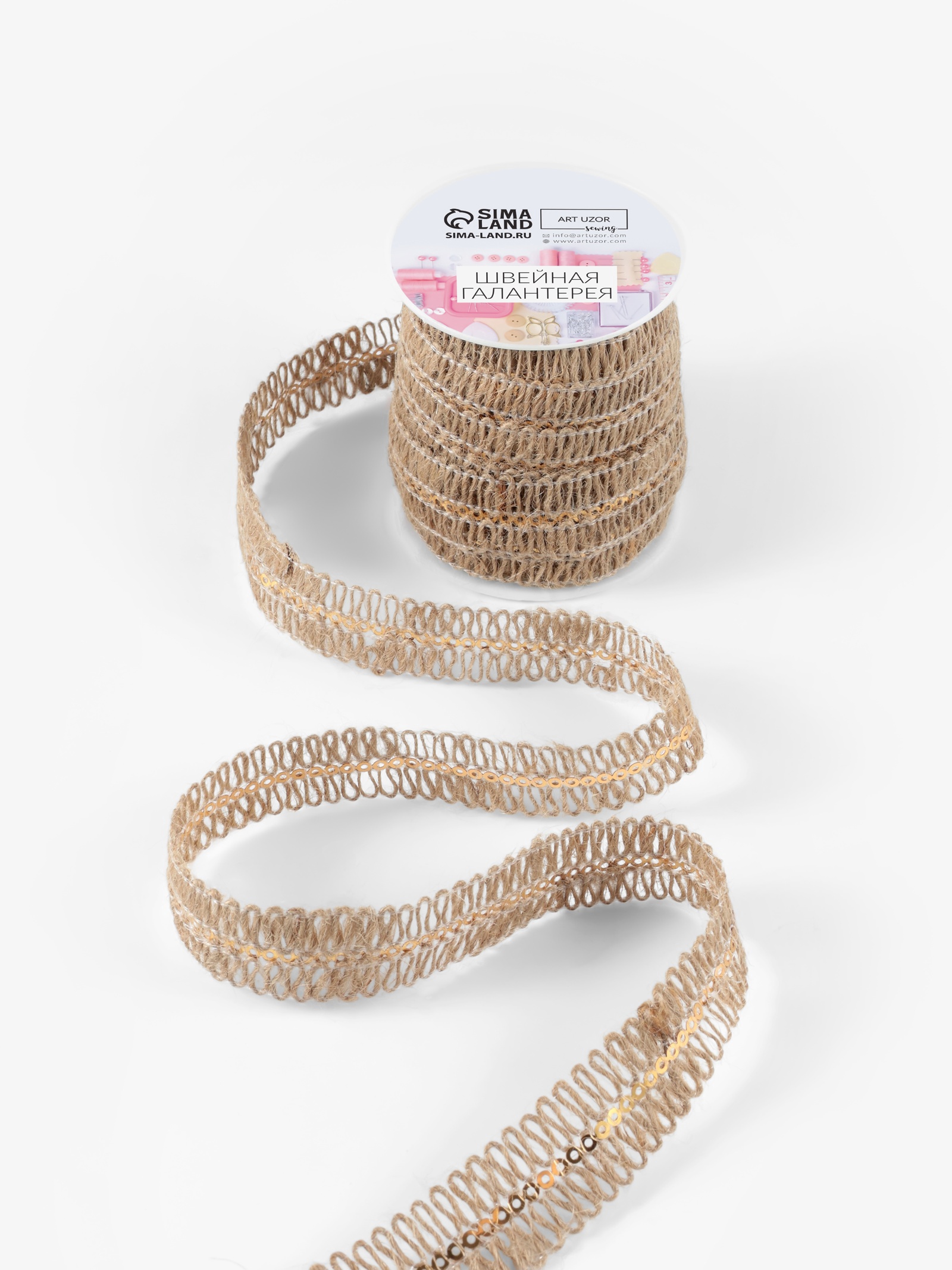 Тесьма декоративная холщовая с пайетками, 20 мм, бежевая, 9624120